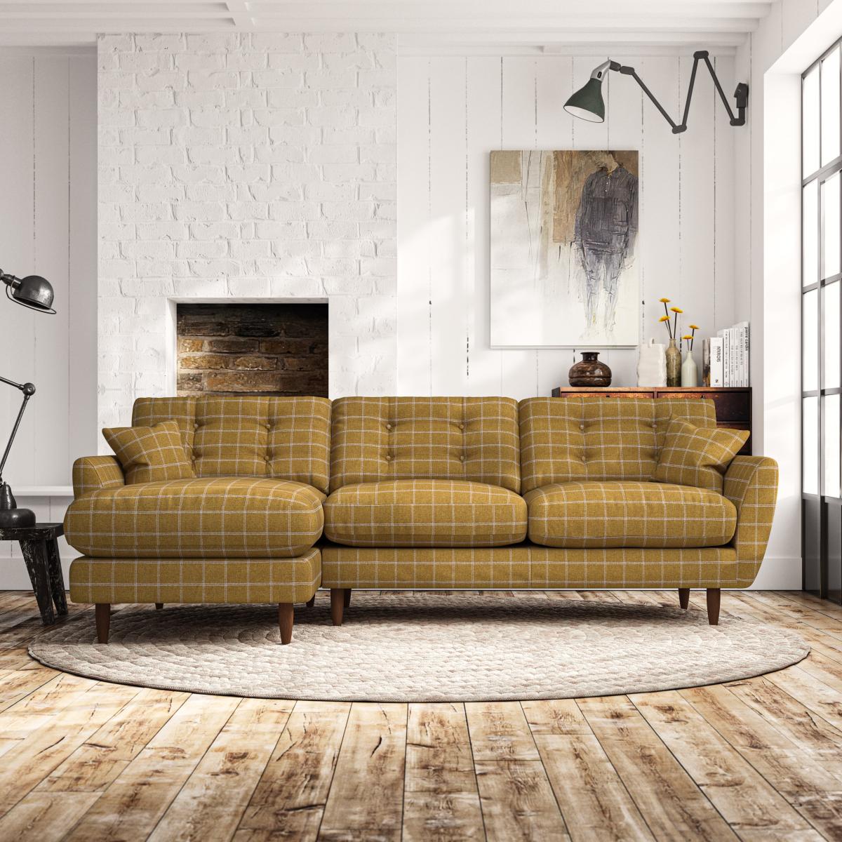 * Scandi design* Tear drop arms* Scatter cushions* Top stitched arm details* Serpentine seat springs* Choose your orientation, support, fabric and leg colour The Anders corner chaise sofa offers the perfect combination of Scandinavian-inspired design and spacious comfort. Its elegant tear-drop shaped arms, fibre-filled scatter cushions, and sleek hardwood legs in a choice of finishes create a modern yet timeless look. Designed for versatility, the corner chaise provides ample room to stretch out and relax, while the fibre-filled back cushions, complete with a stylish double-row button pull detail, ensure both comfort and support. Customise your sofa with a choice of seating options: a supportive, low-maintenance foam seat or the ‘Qualofill Blue’ fibre seat.