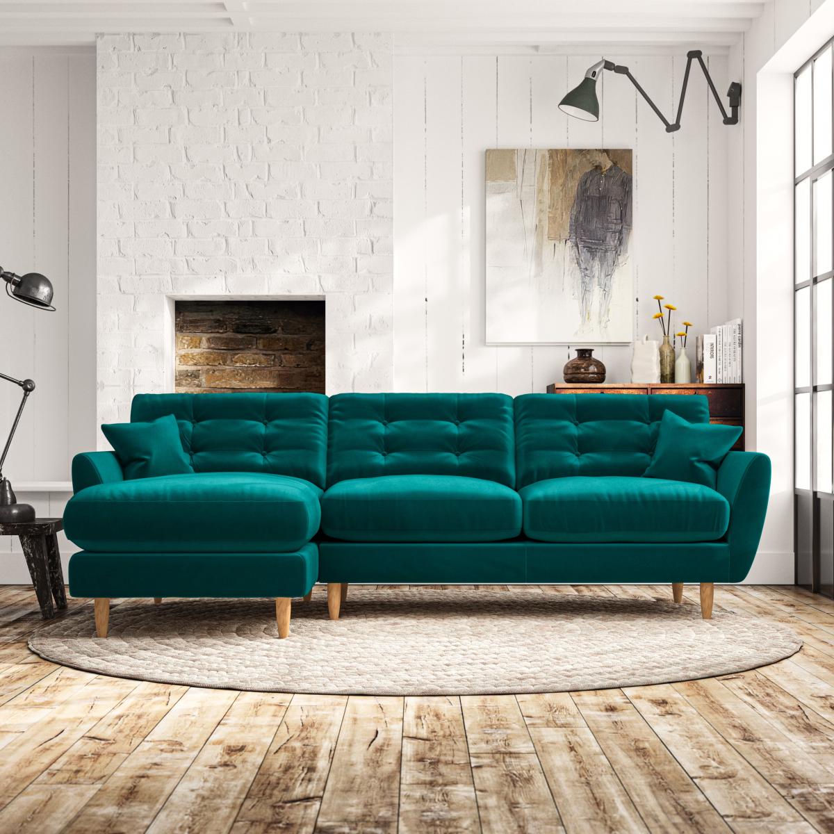 * Scandi design* Tear drop arms* Scatter cushions* Top stitched arm details* Serpentine seat springs* Choose your orientation, support, fabric and leg colour The Anders corner chaise sofa offers the perfect combination of Scandinavian-inspired design and spacious comfort. Its elegant tear-drop shaped arms, fibre-filled scatter cushions, and sleek hardwood legs in a choice of finishes create a modern yet timeless look. Designed for versatility, the corner chaise provides ample room to stretch out and relax, while the fibre-filled back cushions, complete with a stylish double-row button pull detail, ensure both comfort and support. Customise your sofa with a choice of seating options: a supportive, low-maintenance foam seat or the ‘Qualofill Blue’ fibre seat.