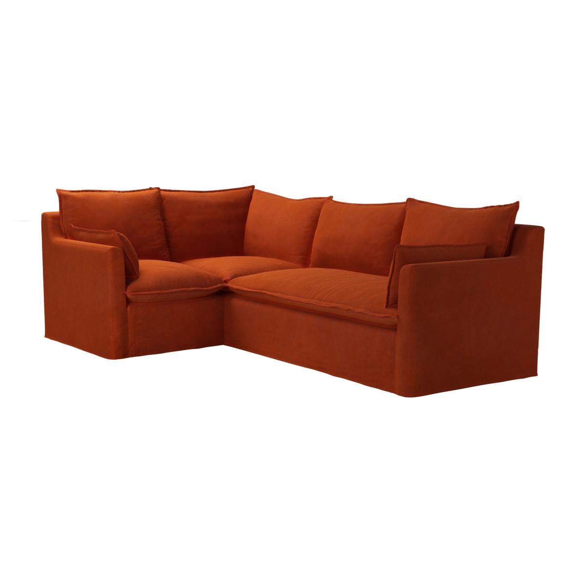 Anders Asym: LHF Single w RHF 2 Seat Sofa bed in Brick Aquaclean Clever Velvet