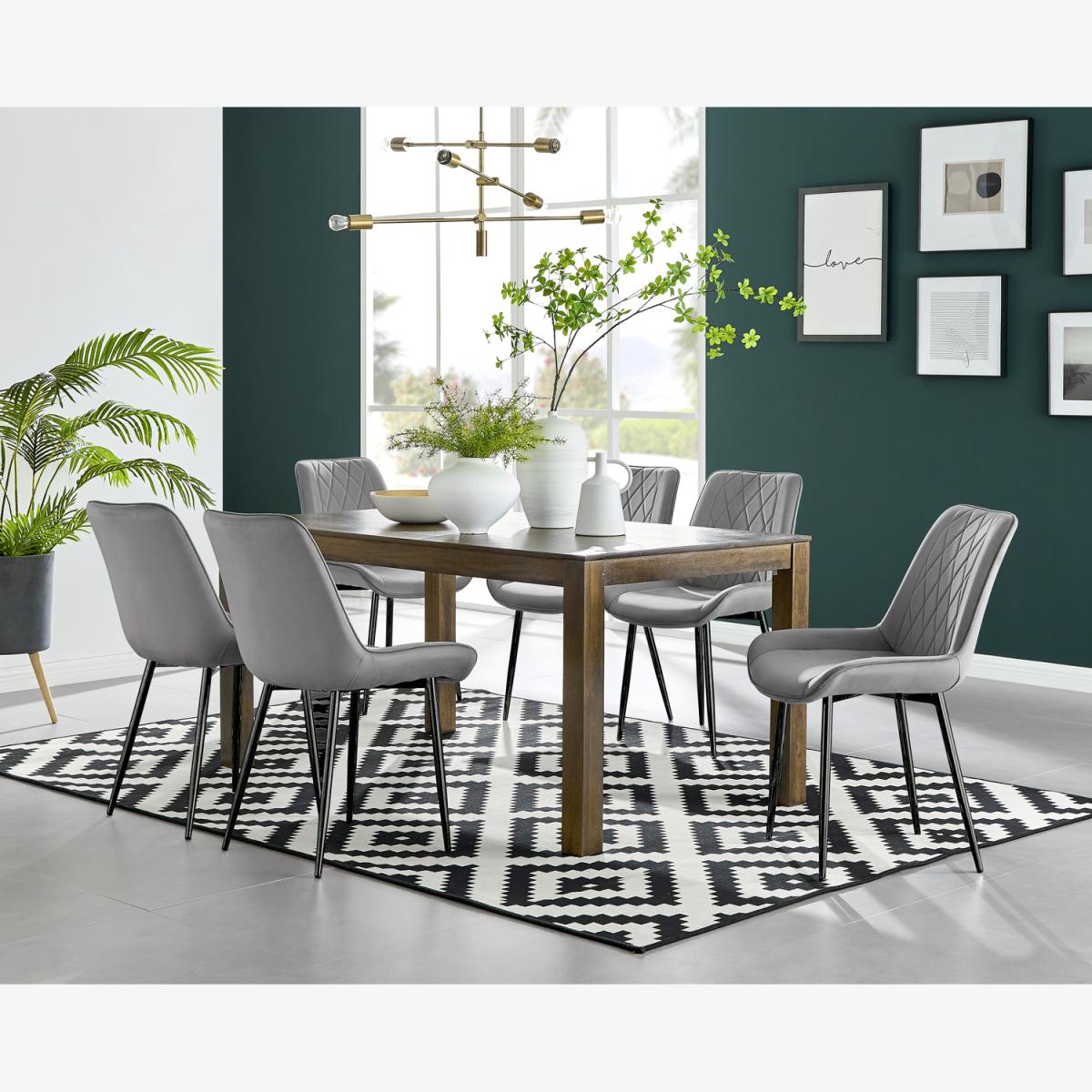 Our Anders solid wood dining table is simple, elegant farmhouse style at its best. This would look stunning in a huge range of home styles. Rustic, Industrial, modern minimalist, whatever your vibe, the Anders will suit. This is a no fuss, no nonsense design of straight lines, but the beautiful wood brings some texture and warmth. How about pairing with some of our modern upholstered dining chairs for an on-trend "newstalgia" look of new meets old Made from solid sustainably sourced mango wood in a gorgeous rich and dark walnut tone, this table really will be the heart of your home. Imagine this being the centre of all your family feasts! This model seats 6, but it's also available as a 4 seater - great for smaller spaces. We also have this in a warm honey finish too. Does the Anders belong in your home Modernise your dining area with our luxurious velvet upholstered Pesaro Dining Chairs. With a nod to the Mid-century modern design era, the Pesaro features gorgeous textured diamond stitching with an ergonomically designed curved seat pad blending seamlessly to the supporting medium high back rest. Sat atop elegant slightly tapered legs in black, chrome or gold effect. The Pesaro is a perfect match to any dining table or use as a luxe vanity seat in the bedroom, as an occasional chair for the living area or to add a bit of luxury to your home office.