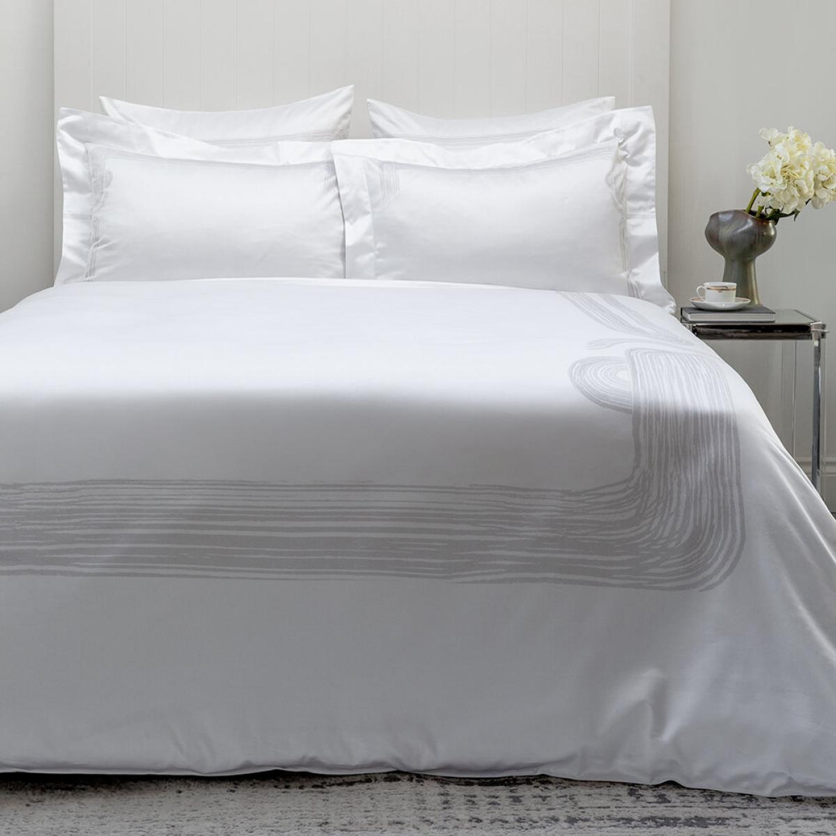 Bring instant luxury into your bedroom with this Art Deco Garden Spruce duvet set from André Fu Living. Made from cotton sateen with an opulent 1000 thread count, it’s been decorated with an Art Deco-inspired brushstroke design in white tones. Pair with more accessories from André Fu Living to coordinate your look.