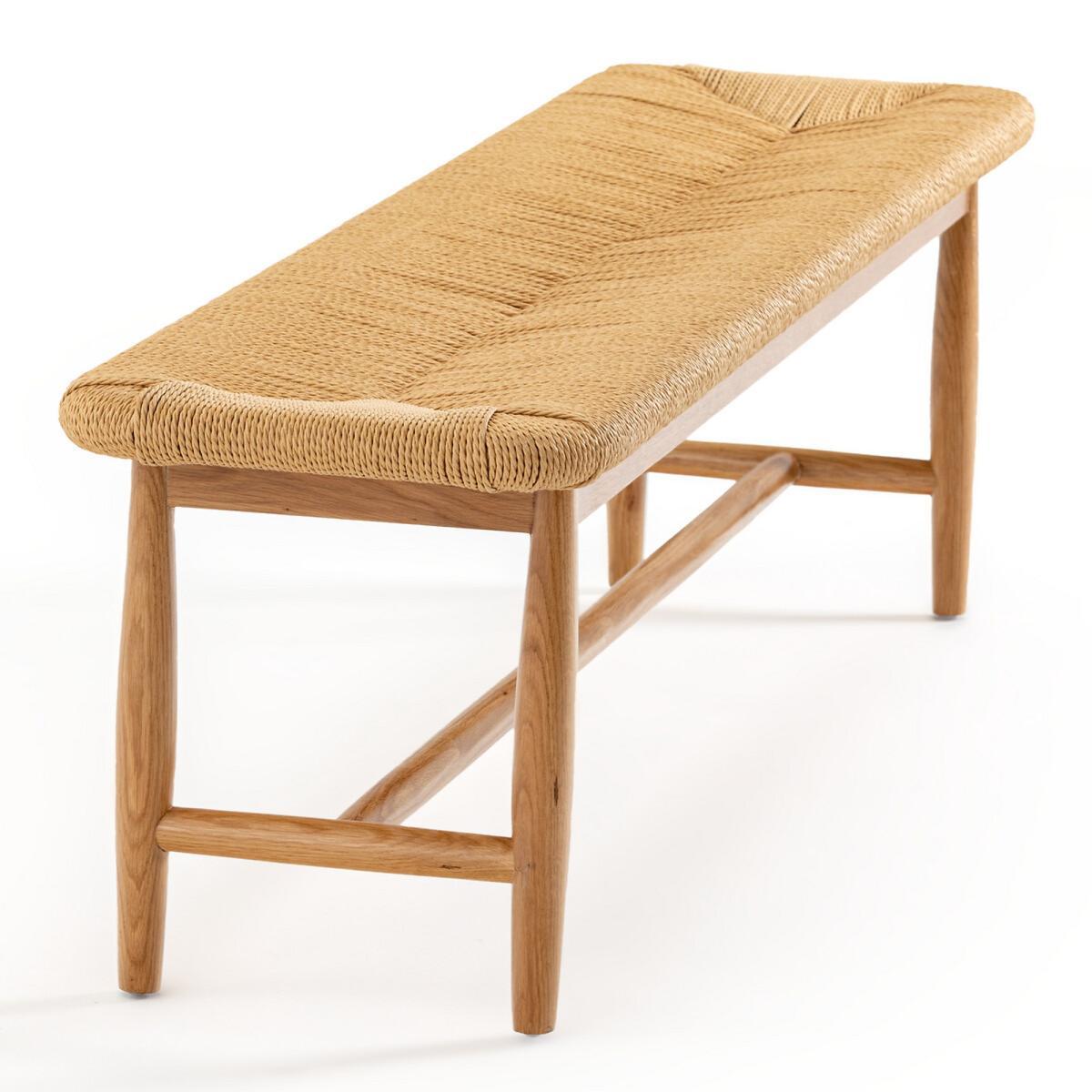 Andre Solid Oak & Woven Cord Bench, L160cm