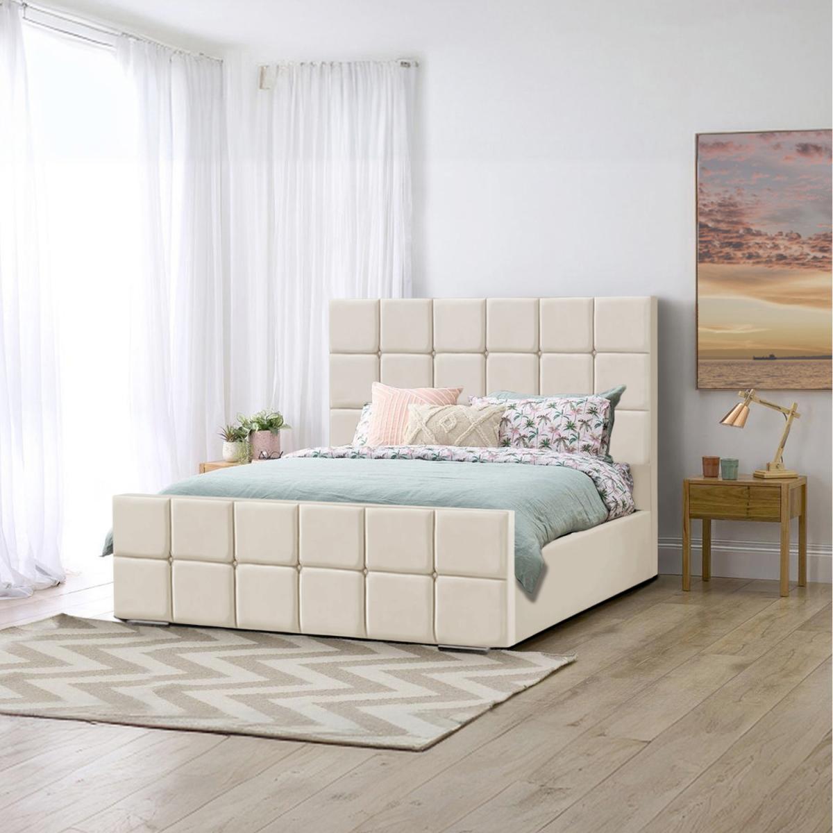 This Cube design bed is created in regards to modern style and gives you a look of latest trends to decorate your bedroom. The patterns created on this bed are based on unique but exquisite longitudinal margins that creates a graceful appearance. Furthermore, these elegant patterns are craved out on finest quality of velvet that enhance the aesthetic aspect of this bed. In addition, this bed also features a sublime experience of softness and coziness to offer you with a sound sleep that you have yearned for decades. Succinctly, our beds are the kinds of bed that you dream to possess and experience a relaxing slumber to eradicate all the tired of the weary days. Headboard Height 125cm