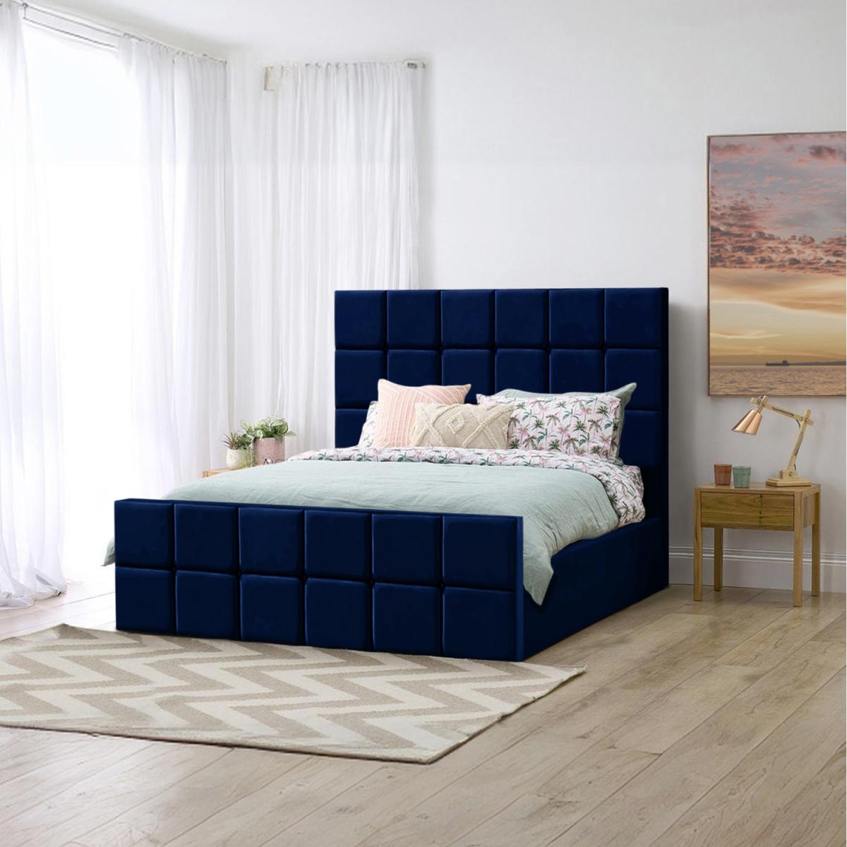 This cube design storage bed is created in regards to modern style and gives you a look of latest trends to decorate your bedroom. The patterns created on this bed are based on unique but exquisite longitudinal margins that creates a graceful appearance. Furthermore, these elegant patterns are craved out on finest quality of velvet that enhance the aesthetic aspect of this bed. In addition, this bed also features a sublime experience of softness and coziness to offer you with a sound sleep that you have yearned for decades. Succinctly, our beds are the kinds of bed that you dream to possess and experience a relaxing slumber to eradicate all the tired of the weary days. Headboard Height 125cm