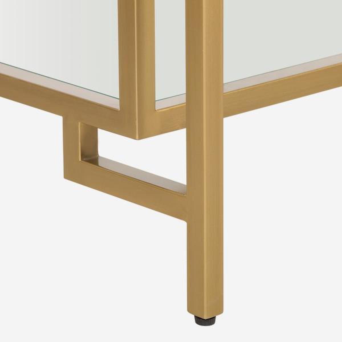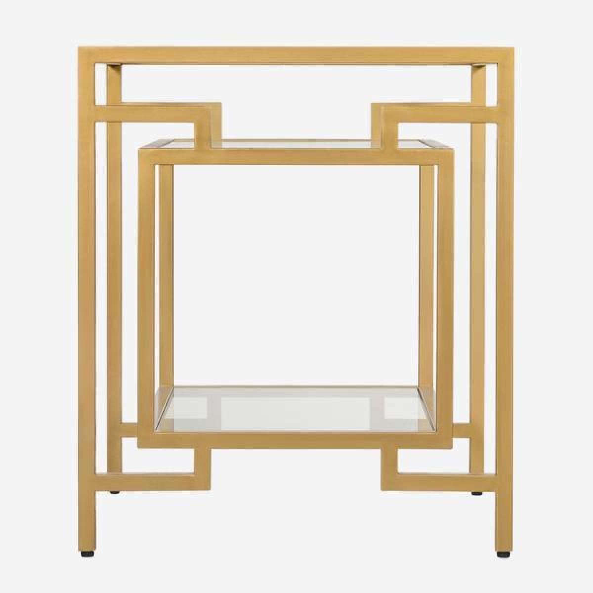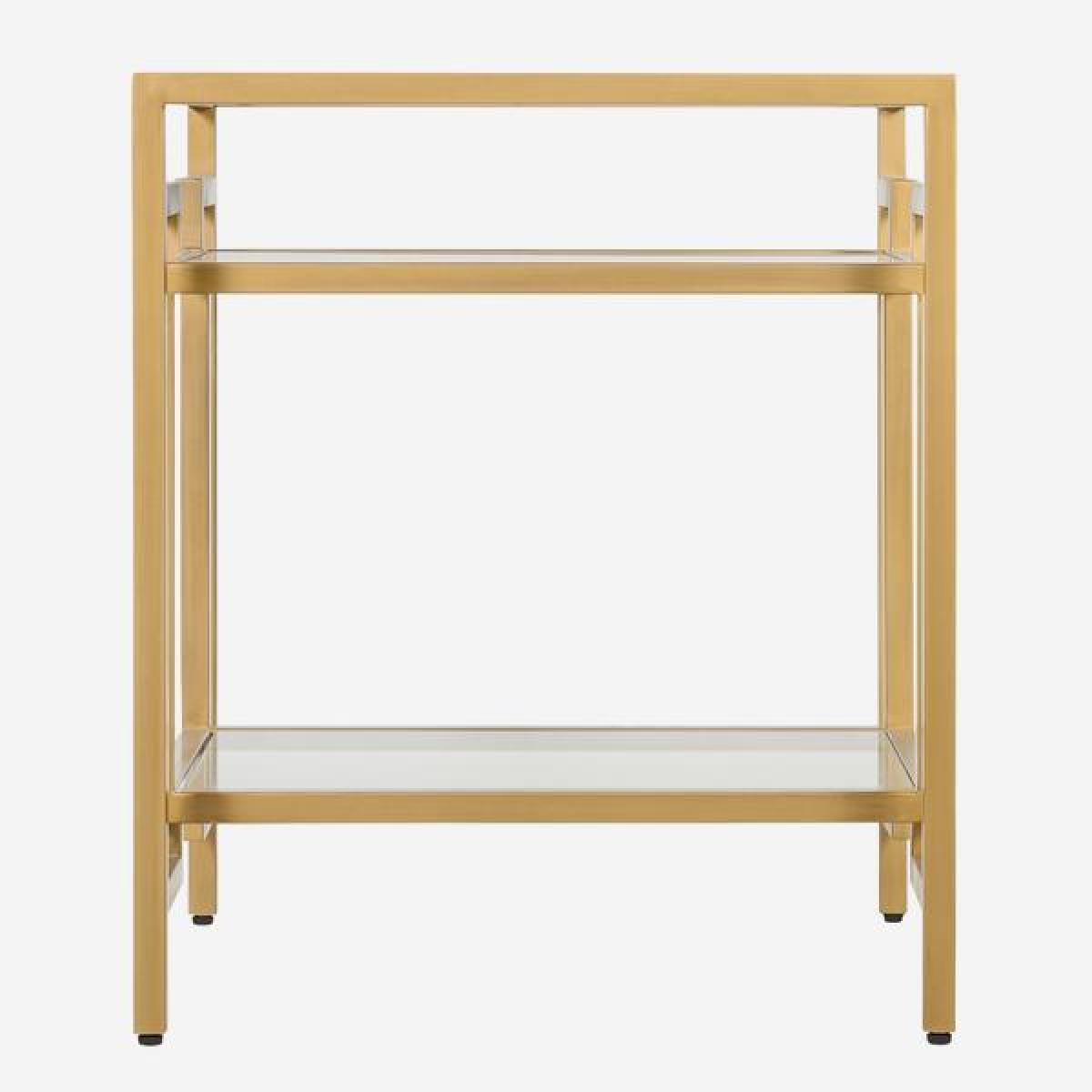 The art deco style of the 1920s has never gone out of fashion and remains popular and relevant 100 years on. The Architect side table by Andrew Martin combines up to date modernism with art deco geometric style. The table is a decorative feature in its own right but its three separate glass surfaces make it ultra practical, too. The three tiers give room to display objets d'art and coffee table books, to have your magazines and reading materials close to hand, and still leave a top surface for a table lamp and drinks. Burnished gold frame with glass shelf inserts. *Moot Trading Ltd is not a lender and acts only as an introducer. The credit product is provided by Klarna Bank AB (publ). Credit is only available to permanent UK residents aged 18 and over, subject to status. Terms and conditions apply. Please note that the following products are not regulated by the FCA: Pay in 30 days and Pay in 3 instalments. Read More.