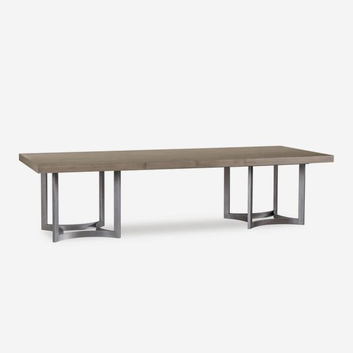 Incorporating clean, architectural lines and a versatile neutral color palette, Ashton Light is perfect for a relaxed aesthetic. An open grain, silver oak table top can be extended to seat the whoe. View More. Incorporating clean, architectural lines and a versatile neutral color palette, Ashton Light is perfect for a relaxed aesthetic. An open grain, silver oak table top can be extended to seat the whoel family and is supported by a pair of elegant, curved steel bases finished in complimentary brushed nickel.