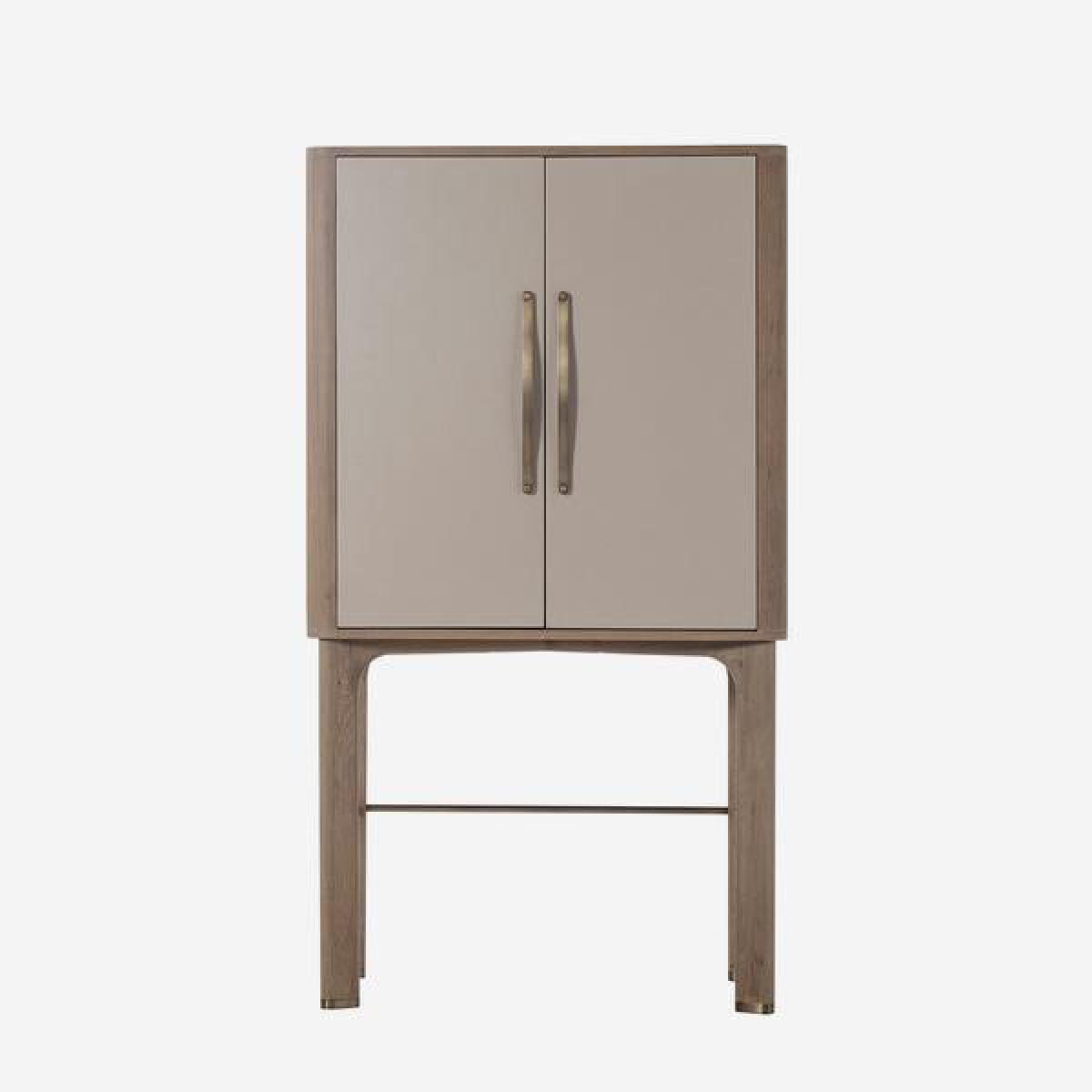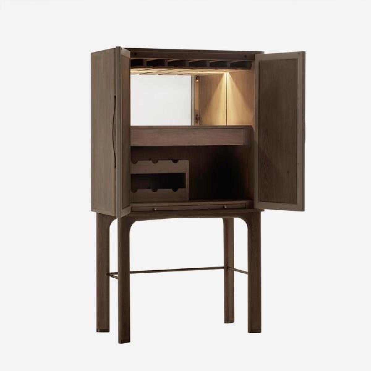 The unusual Charlie bar display cabinet by Andrew Martin is a wonderful addition to your at home entertainment. It has a minimalist, Scandi-look about it, elegantly crafted with faux leather doors and a lovely light coloured oak finish. Inside, the cabinet has everything a home bar needs. There is a removable wine rack, sensor-activated LED lighting and a pull-out bar tray with delicate silver detailing. The natural wood and leather styling makes it a perfect addition to a modern living or dining room, or any other room that hosts guests, and the brass handles with a satin finish make the perfect detailing. *Moot Trading Ltd is not a lender and acts only as an introducer. The credit product is provided by Klarna Bank AB (publ). Credit is only available to permanent UK residents aged 18 and over, subject to status. Terms and conditions apply. Please note that the following products are not regulated by the FCA: Pay in 30 days and Pay in 3 instalments. Read More.