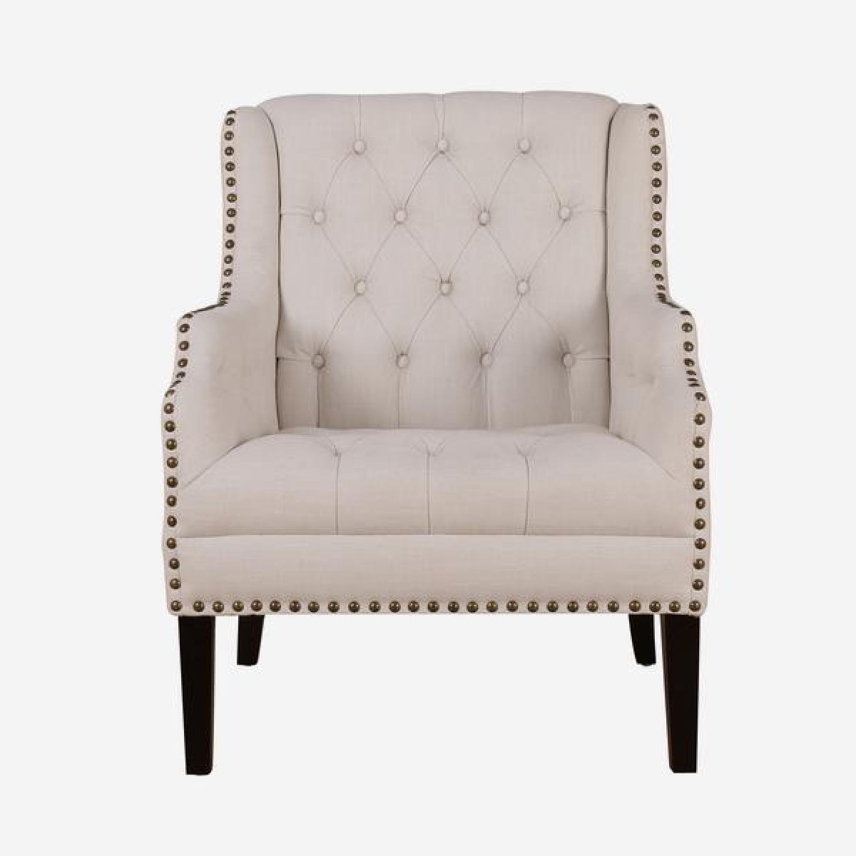 Sink into stylish luxury with the striking Bassett armchair, brought to you by the renowned designer Andrew Martin. The Bassett armchair is not just quirky and fascinating in appearance, it is an absolute dream to relax in as well. The button backing is reminiscent of the ‘Chesterfield’ style of upholstery, but the stud detailing gives the Bassett a unique, more modern appearance. The Bassett armchair is the perfect addition to a modern home, the crisp lines and clean colouring of the armchair making the Bassett perfectly suited to almost any interior décor theme.