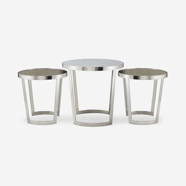 An innovative nested coffee table set, each piece crafted from lustrous polished nickel. The largest centre piece has a luxurious marble top while the complimentary side pieces are topped by open grain grey oak. This piece works as an artistically designed set or as individual side tables to accent a neutral contemporary environment. *Moot Trading Ltd is not a lender and acts only as an introducer. The credit product is provided by Klarna Bank AB (publ). Credit is only available to permanent UK residents aged 18 and over, subject to status. Terms and conditions apply. Please note that the following products are not regulated by the FCA: Pay in 30 days and Pay in 3 instalments. Read More.