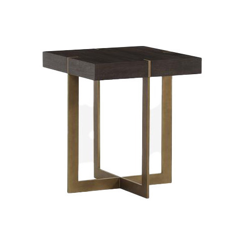 A sculptural side table evocative of cubist design, with a square espresso stained coloured oak veneer top supported by slender interlocking brass legs. This elegant side table is an artistic accent to an industrial chic or contemporary space. *Moot Trading Ltd is not a lender and acts only as an introducer. The credit product is provided by Klarna Bank AB (publ). Credit is only available to permanent UK residents aged 18 and over, subject to status. Terms and conditions apply. Please note that the following products are not regulated by the FCA: Pay in 30 days and Pay in 3 instalments. Read More.