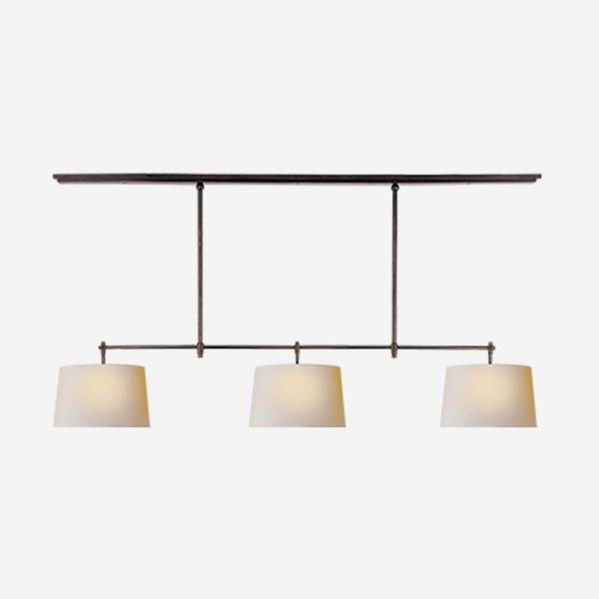 A billiard light in bronze with three natural paper shades and an interesting linear silhouette. Crafted by iconic designer Thomas O'Brien, place Bryant over a dining table to add some modern industrial chic into you home. Available in two sizes. *Moot Trading Ltd is not a lender and acts only as an introducer. The credit product is provided by Klarna Bank AB (publ). Credit is only available to permanent UK residents aged 18 and over, subject to status. Terms and conditions apply. Please note that the following products are not regulated by the FCA: Pay in 30 days and Pay in 3 instalments. Read More.