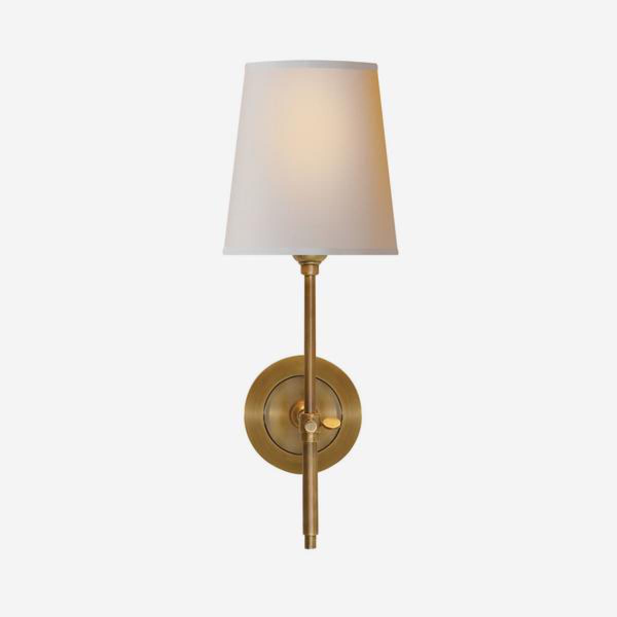 A small wall lamp in hand-rubbed antique brass with a plain natural shade. Crafted by iconic designer Thomas O'Brien, Bryant is perfect for a bathroom or hallway, adding subtle light and a smart finish to a wall. *Moot Trading Ltd is not a lender and acts only as an introducer. The credit product is provided by Klarna Bank AB (publ). Credit is only available to permanent UK residents aged 18 and over, subject to status. Terms and conditions apply. Please note that the following products are not regulated by the FCA: Pay in 30 days and Pay in 3 instalments. Read More.
