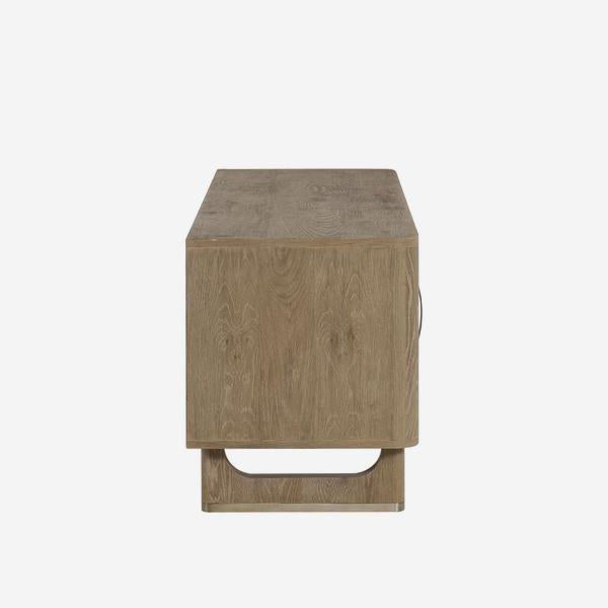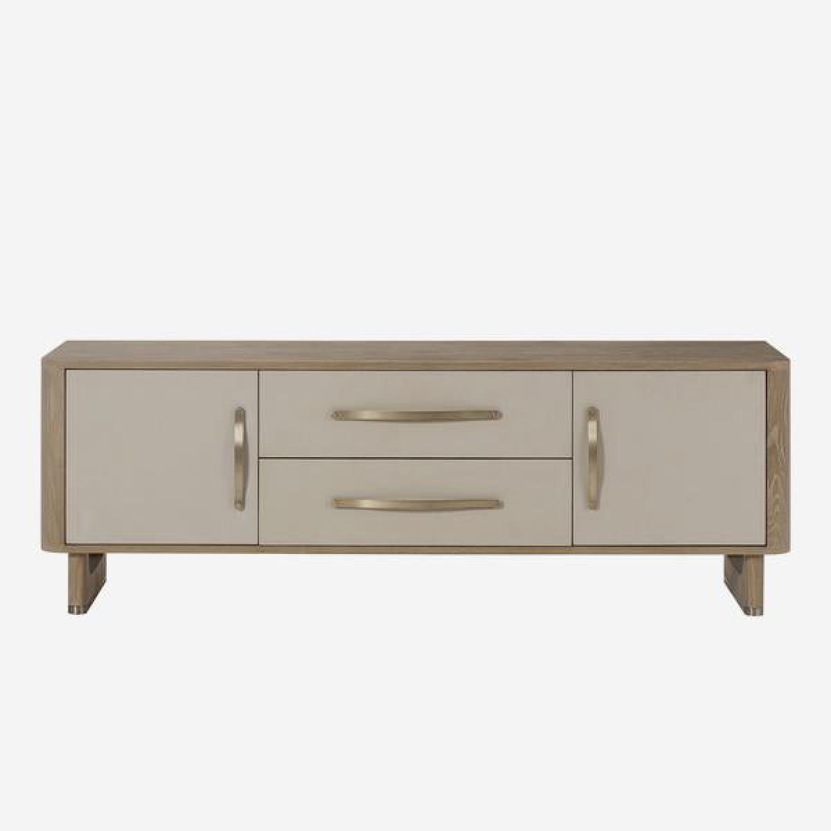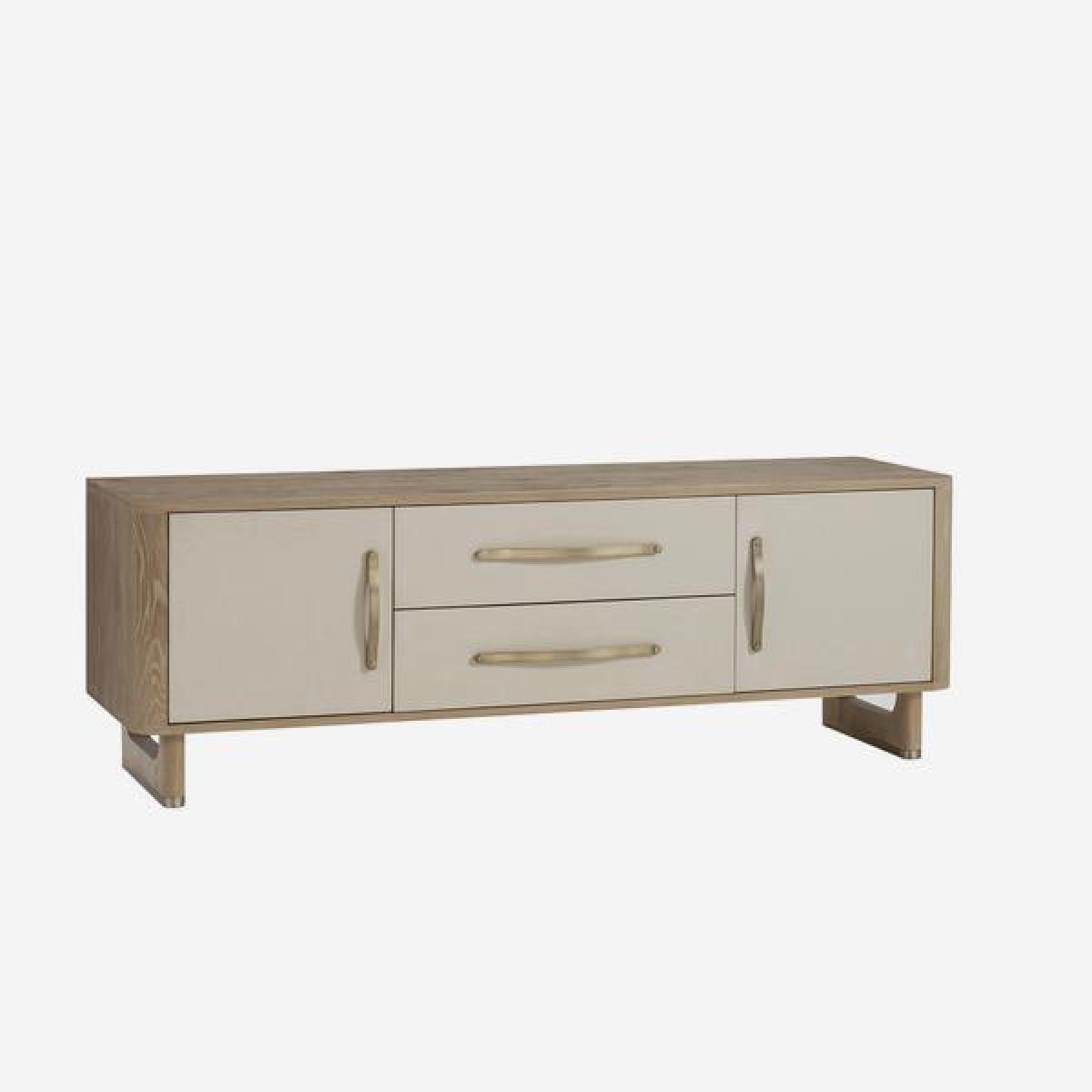 Choose a sleek and minimal media unit that will add storage to your lounge or living room and keep the focus on media devices. The Andrew Martin Charlie Natural Light Oak Finish Media Unit uses a light wood finish against slightly contrasting lighter doors and muted gold finish handles. It will perfectly match any warm or neutrally toned colour palettes. This piece offers ample storage in the form of two substantial drawers and two cupboards with two tier shelf storage, ideal for storing media, consoles, multimedia boxes and games. The dimensions for this unit are width 180cm, height 61cm and depth 46cm. *Moot Trading Ltd is not a lender and acts only as an introducer. The credit product is provided by Klarna Bank AB (publ). Credit is only available to permanent UK residents aged 18 and over, subject to status. Terms and conditions apply. Please note that the following products are not regulated by the FCA: Pay in 30 days and Pay in 3 instalments. Read More.