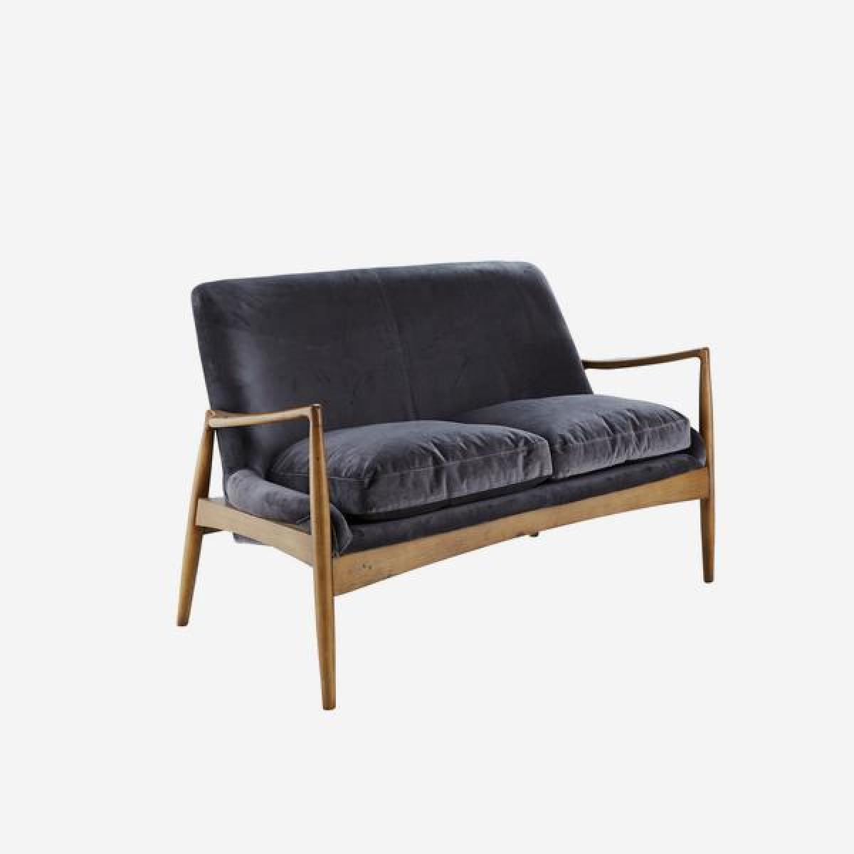 A sumptuous grey velvet sofa in a dark rich wooden frame. Crispin displays a mid-century silhouette with thin arms and legs naturally decorated with wood graining. The upholstery adds depth and mystery to a scheme, like the robe of a sorcerer enveloping you in his velvety magi. *Moot Trading Ltd is not a lender and acts only as an introducer. The credit product is provided by Klarna Bank AB (publ). Credit is only available to permanent UK residents aged 18 and over, subject to status. Terms and conditions apply. Please note that the following products are not regulated by the FCA: Pay in 30 days and Pay in 3 instalments. Read More.
