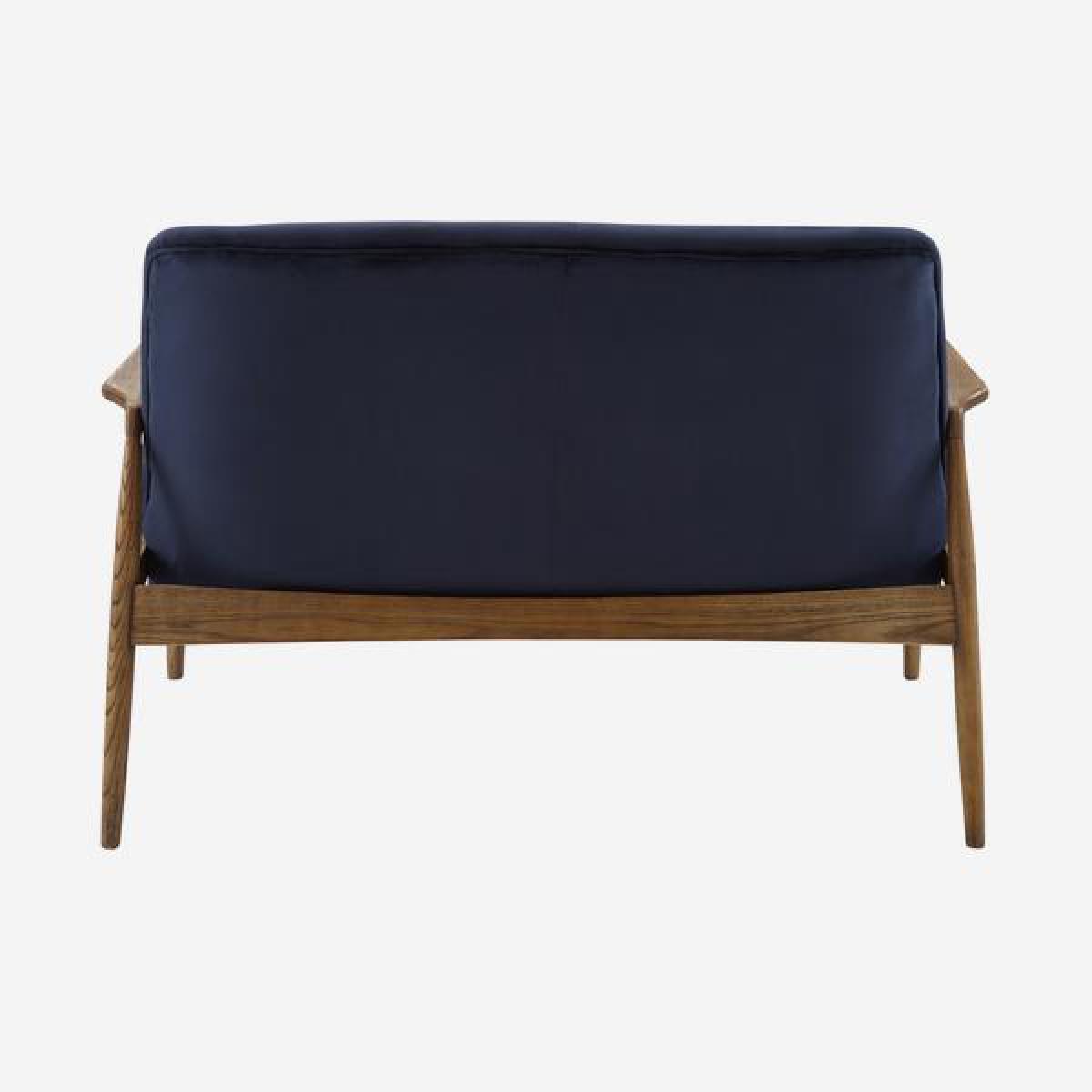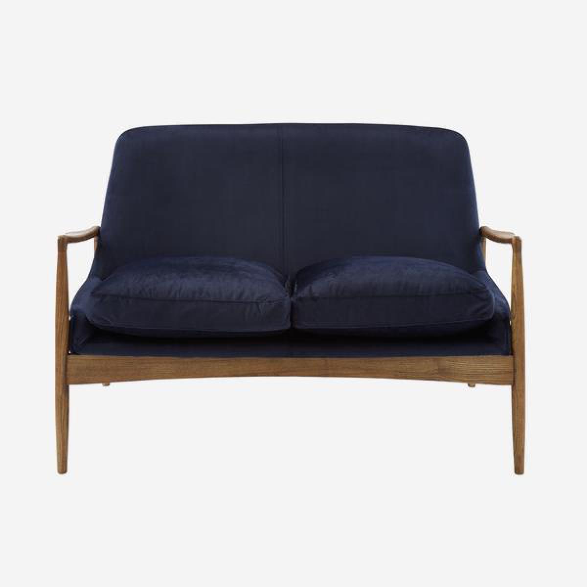 A small midnight blue velvet sofa in a dark rich wooden frame. Crispin displays a mid-century silhouette with thin arms and legs. Naturally decorated with wood graining. The upholstery adds depth. And mystery to a scheme, like the robe of a sorcerer enveloping you. In his velvety magic. *Moot Trading Ltd is not a lender and acts only as an introducer. The credit product is provided by Klarna Bank AB (publ). Credit is only available to permanent UK residents aged 18 and over, subject to status. Terms and conditions apply. Please note that the following products are not regulated by the FCA: Pay in 30 days and Pay in 3 instalments. Read More.