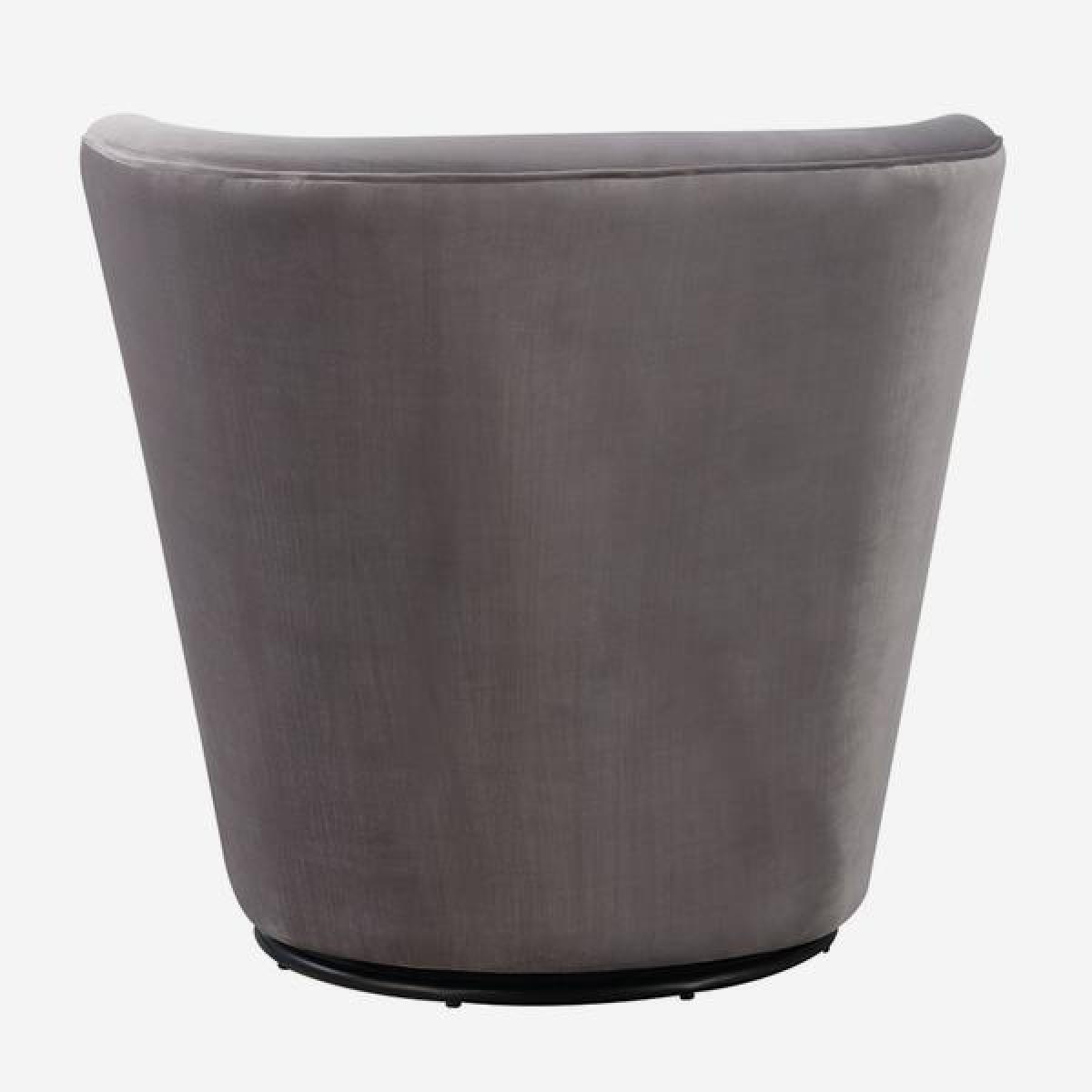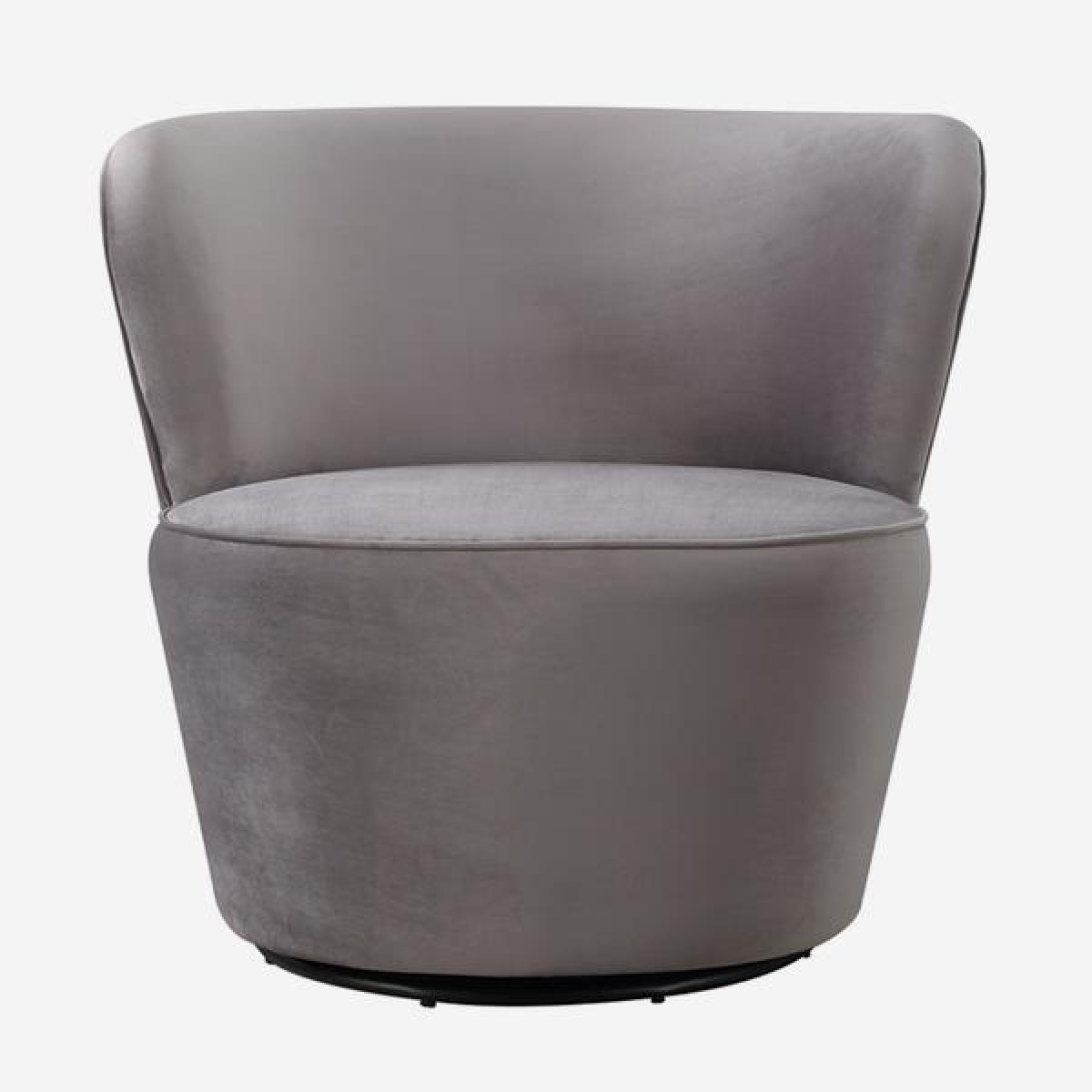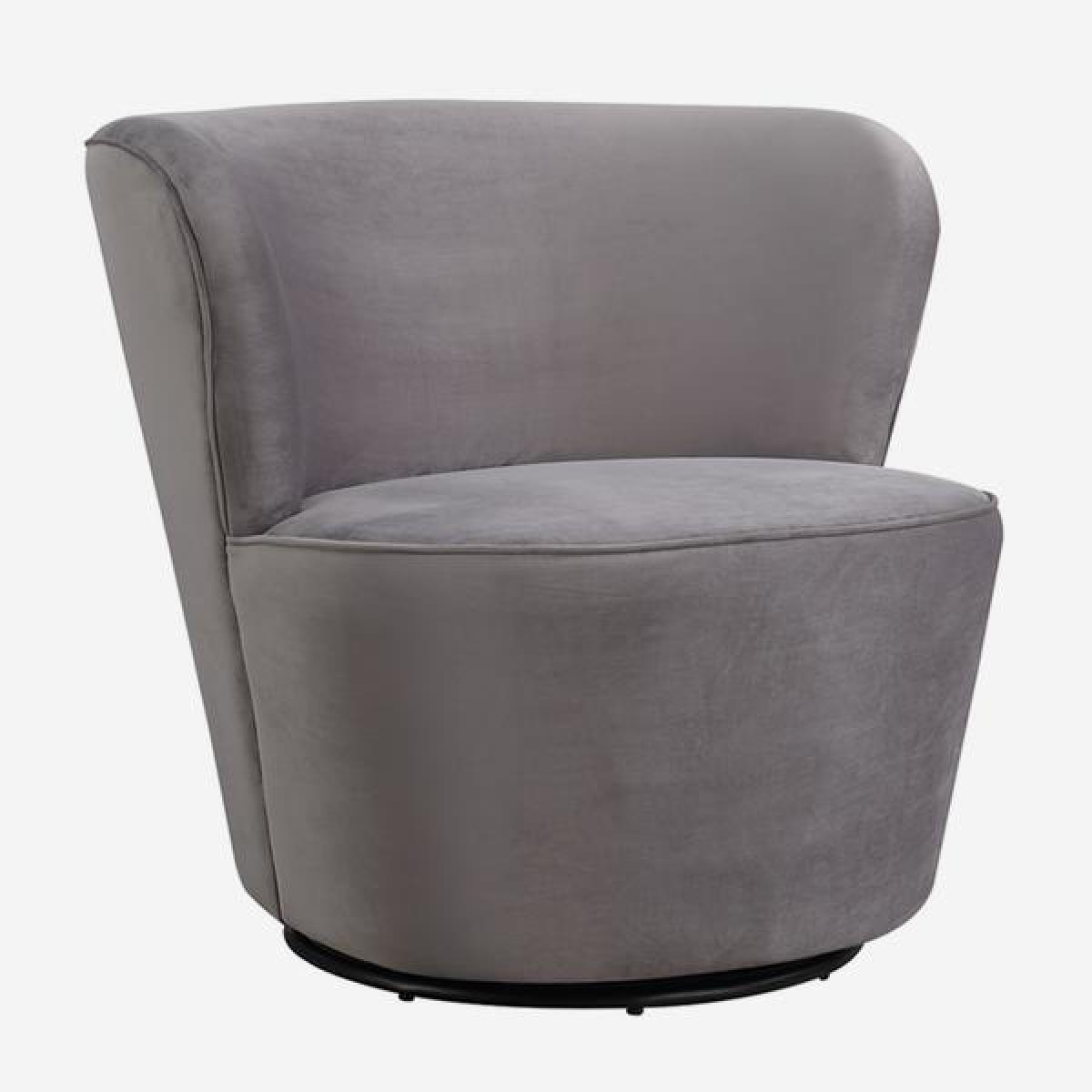 A low standing, mid-century cocktail chair with a fun twist. Dorothy embraces you into its curved frame and then spins you round on its swivel base. It is covered in soft grey velvet and plumped up with a soft cushion seat and back. *Moot Trading Ltd is not a lender and acts only as an introducer. The credit product is provided by Klarna Bank AB (publ). Credit is only available to permanent UK residents aged 18 and over, subject to status. Terms and conditions apply. Please note that the following products are not regulated by the FCA: Pay in 30 days and Pay in 3 instalments. Read More.