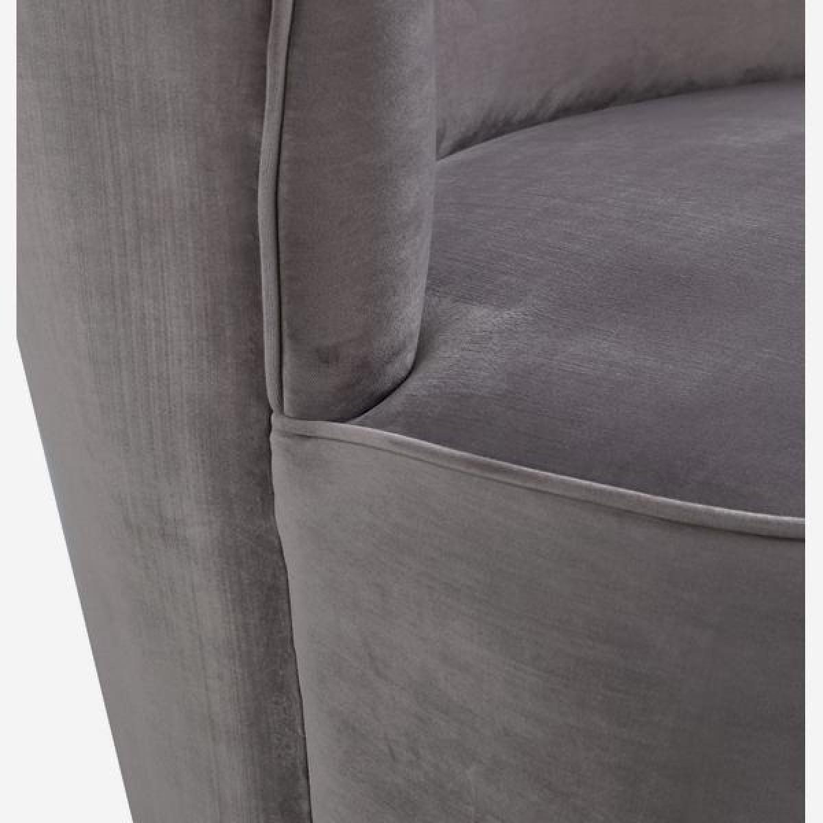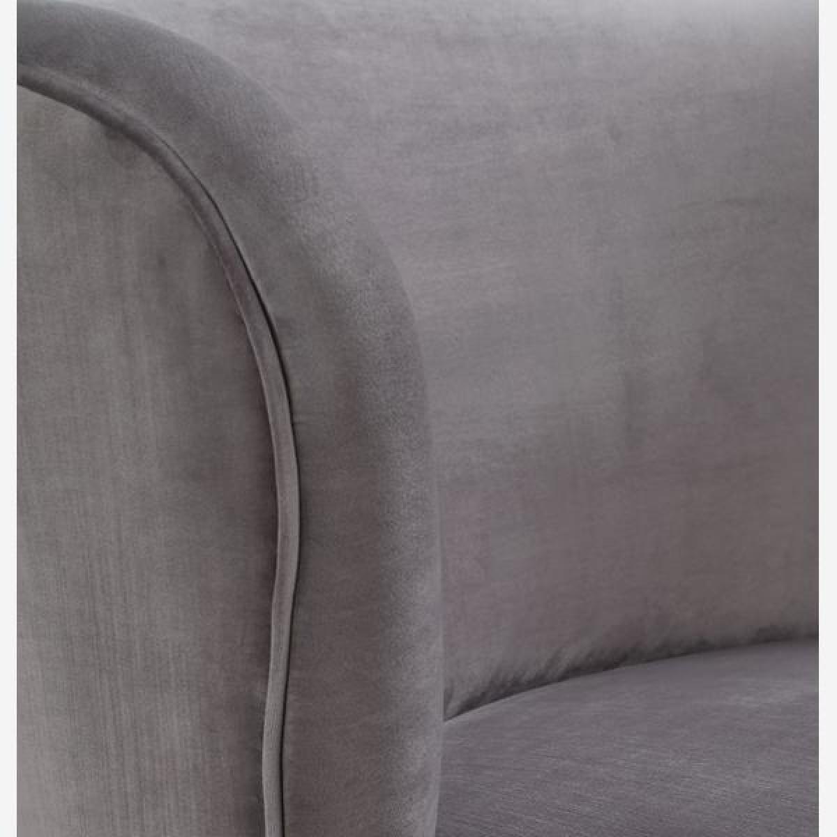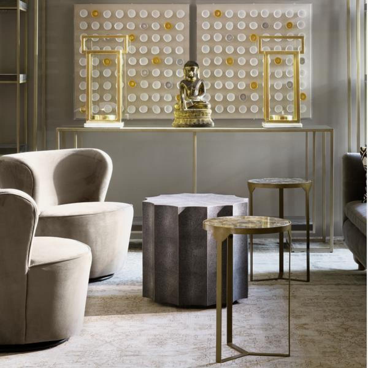 A low standing, mid-century cocktail chair with a fun twist. Dorothy embraces you into its curved frame and then spins you round on its swivel base. It is covered in soft grey velvet and plumped up with a soft cushion seat and back. *Moot Trading Ltd is not a lender and acts only as an introducer. The credit product is provided by Klarna Bank AB (publ). Credit is only available to permanent UK residents aged 18 and over, subject to status. Terms and conditions apply. Please note that the following products are not regulated by the FCA: Pay in 30 days and Pay in 3 instalments. Read More.