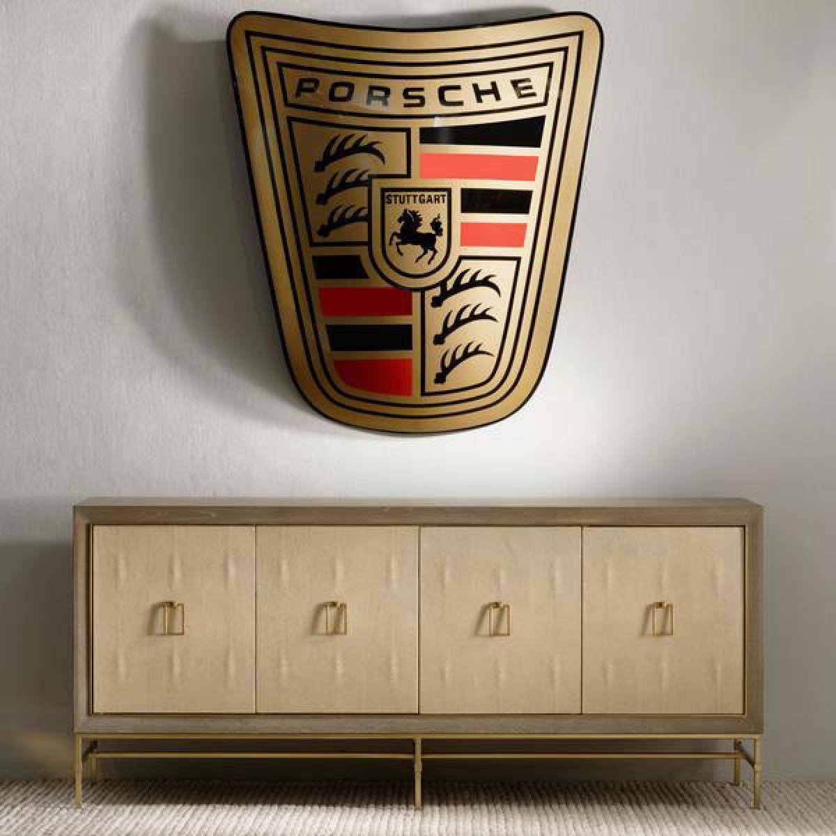 The Edith ivory shagreen sideboard from Andrew Martin is a glamorous statement piece. Four elegant cupboard doors with gleaming yellow-gold coloured handles open to reveal a stunning and versatile storage solution. The centre doors reveal two shelves and a wide drawer stretching the width of both cupboards, with each outer cupboard door revealing a pair of chic shelves. Another practical feature is the elegant yellow-gold metallic framework that elevates the sideboard from the floor. This stylish sideboard, which measures 183cm wide, 81cm high and 51cm in diameter, features a gorgeous shagreen veneer and will suit both contemporary and traditional interiors. *Moot Trading Ltd is not a lender and acts only as an introducer. The credit product is provided by Klarna Bank AB (publ). Credit is only available to permanent UK residents aged 18 and over, subject to status. Terms and conditions apply. Please note that the following products are not regulated by the FCA: Pay in 30 days and Pay in 3 instalments. Read More.