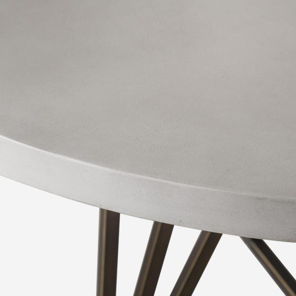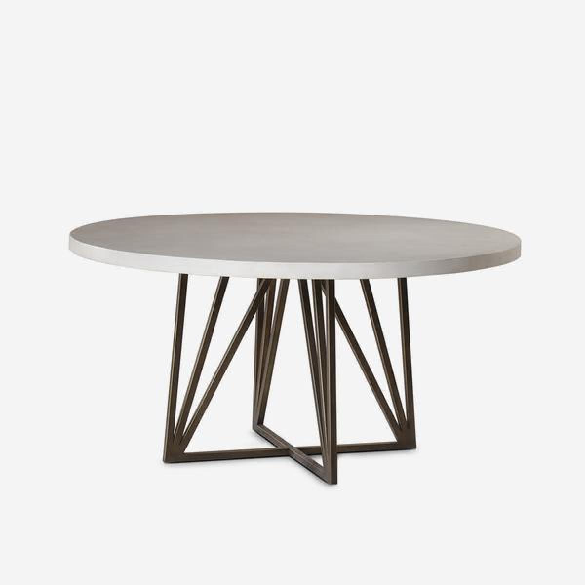 A beautifully sculptural dining table supported by a steel base made of interlocking geometric shapes in a bronze finish topped with a white circular concrete slab. Evoke the essence of industrial chic with this artistically designed piece. *Moot Trading Ltd is not a lender and acts only as an introducer. The credit product is provided by Klarna Bank AB (publ). Credit is only available to permanent UK residents aged 18 and over, subject to status. Terms and conditions apply. Please note that the following products are not regulated by the FCA: Pay in 30 days and Pay in 3 instalments. Read More.