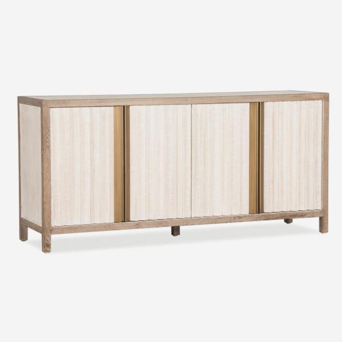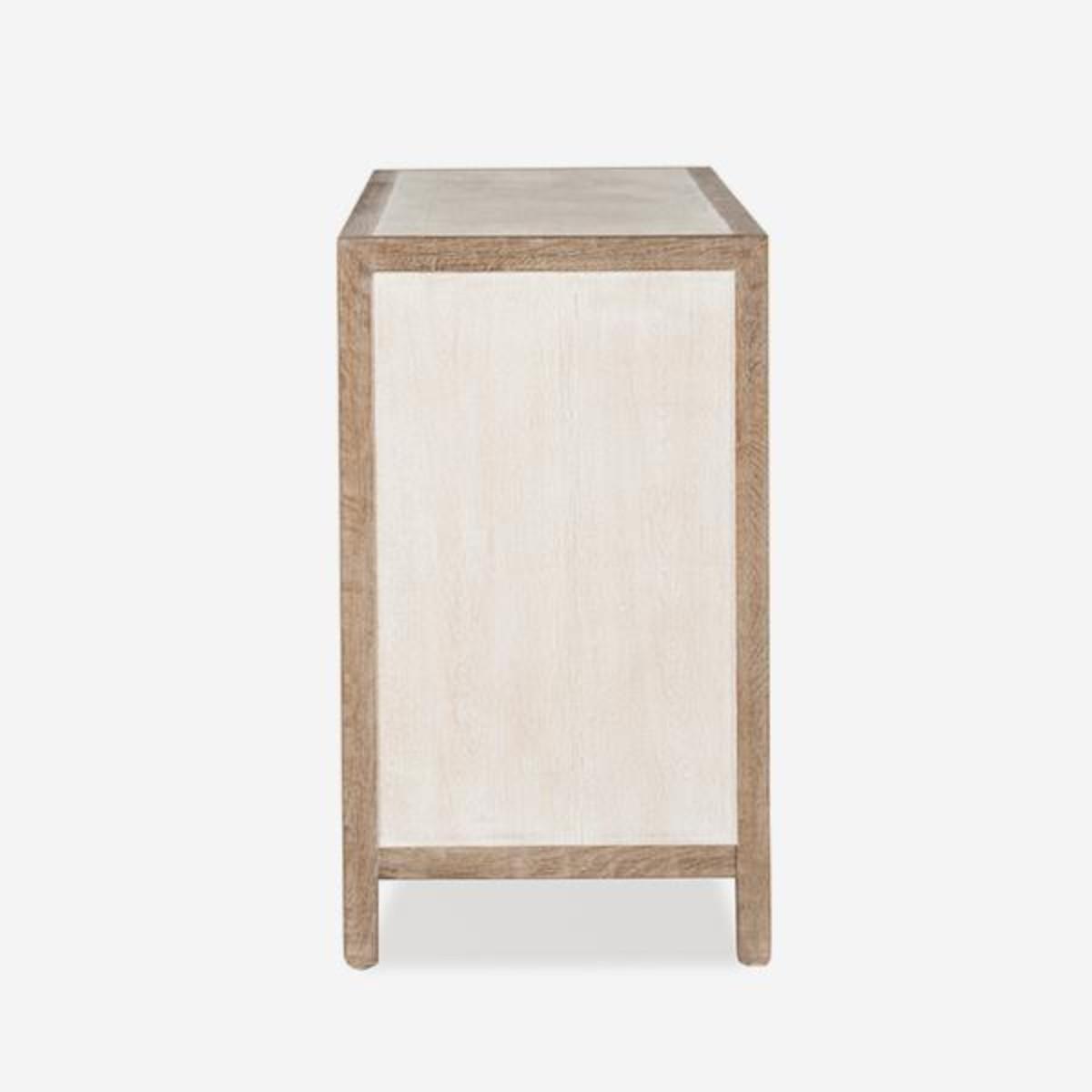 I’m a fan of the Etta sideboard because its subtle ribbed doors and warm oak frame bring texture and light without overwhelming a room. It sits comfortably in a Scandi-inspired living area, a pared-back contemporary dining space or a relaxed coastal scheme, and the vertical brass handles add just enough shine to lift neutral palettes. To style it, keep the top uncluttered - perhaps a trio of ceramic vases in varying heights, a low-profile lamp and a round mirror above to bounce light. Inside, use uniform woven baskets or simple glassware to make the most of its generous storage while keeping everything easy to find.