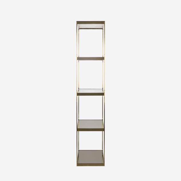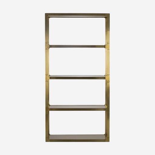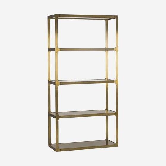 I love this gold bookcase for its sleek, modern silhouette that adds a touch of luxury to any space. It's particularly effective in contemporary interiors or as a statement piece in more eclectic settings. Practical styling tips include layering books with decorative objects, plants, or personal keepsakes to create visual interest. It works well in living rooms, home offices, or bedrooms, where its open design allows for versatility and easy access. To enhance its gold finish, consider pairing it with neutral or monochrome palettes, letting the standout metalwork shine without competing with other finishes.