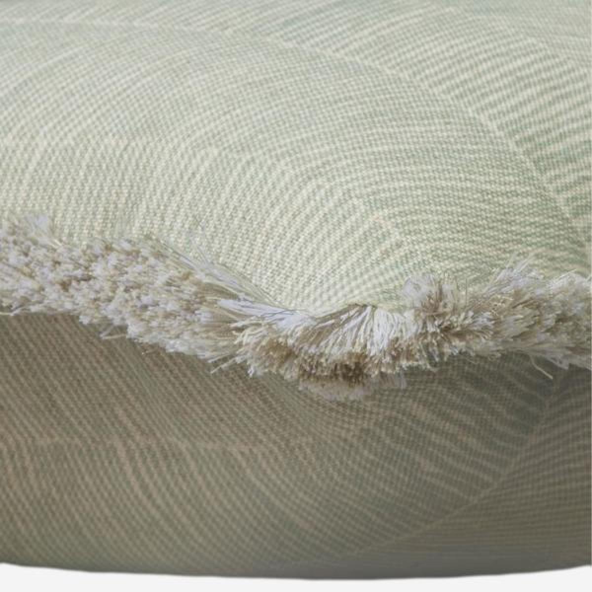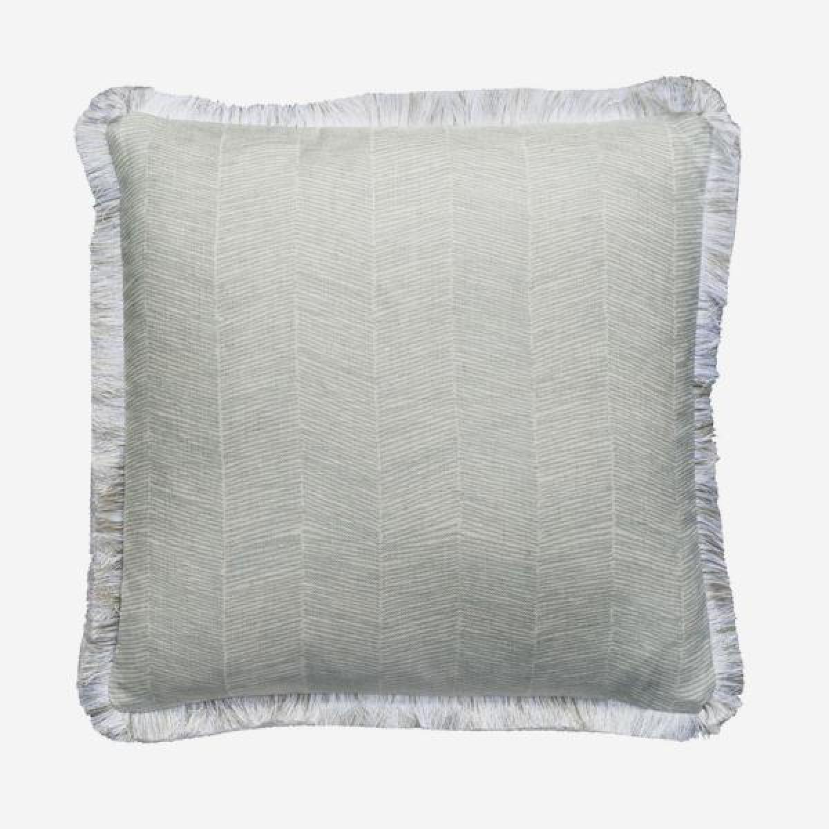 This calming and elegant herringbone print in a sun soaked Celadon hue has been paired with Alezio, a soft metallic fringe to effortlessly bring the rustic charm of southern Italy into your home. Designed in collaboration with renowned interior designer Sophie Paterson this cushion has been handmade in the UK and filled with sustainably sourced duck feather and down. Scatter with cushions in similar colours and contrasting patterns to incorporate some of Salento's rustic elegance into your own home. *Moot Trading Ltd is not a lender and acts only as an introducer. The credit product is provided by Klarna Bank AB (publ). Credit is only available to permanent UK residents aged 18 and over, subject to status. Terms and conditions apply. Please note that the following products are not regulated by the FCA: Pay in 30 days and Pay in 3 instalments. Read More.