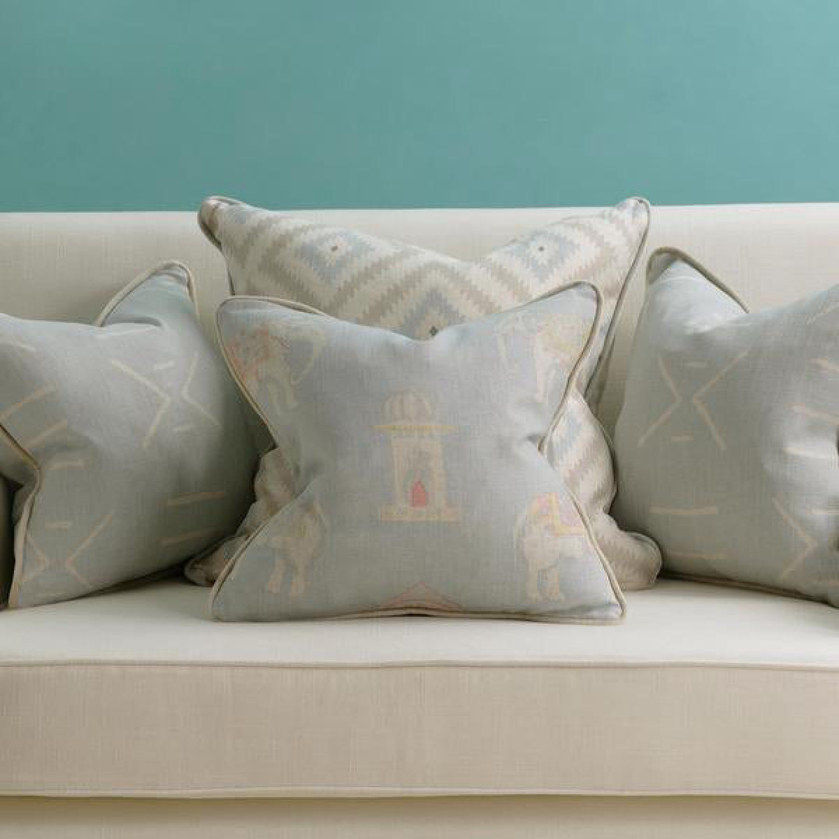 The Glacier Powder cushion from Andrew Martin is a plush furnishing, filled with sustainably sourced duck feathers and down, that will look beautiful in a stylish contemporary home. The Glacier is upholstered in a supple and velvety linen blend material that Andrew Martin call Mossop Ice. It features a geometric pattern in a soft beige and icy blue with matching piping round the sides that will complement an equally cool and sophisticated colour scheme. The design is said to be inspired by Turkish cafés on the streets of Istanbul. These cushions are 43cm square but the Glacier is also available in a larger size. *Moot Trading Ltd is not a lender and acts only as an introducer. The credit product is provided by Klarna Bank AB (publ). Credit is only available to permanent UK residents aged 18 and over, subject to status. Terms and conditions apply. Please note that the following products are not regulated by the FCA: Pay in 30 days and Pay in 3 instalments. Read More.