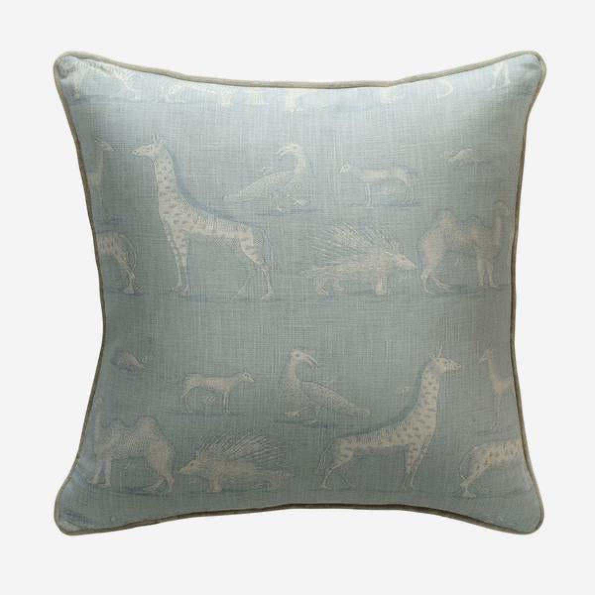 The palest egg-shell-blue tint on the grey of this Mossop stone cushion from Andrew Martin accents the tightly woven fabric and sits perfectly against the luxurious velvet piping around its edge. Sketched animals that could have stepped straight from Kipling’s stories or Livingston’s diaries adorn the cover and evoke thoughts of safari adventures. Stuffed generously with both down and feathers from sustainable sources, this cushion is as comfortable as it is decorative. Ideal for a sophisticated child’s bedroom with nature-inspired themes and palette where the animals would delight a young mind. This cushion would also contrast well against a dark leather sofa in the lounge. *Moot Trading Ltd is not a lender and acts only as an introducer. The credit product is provided by Klarna Bank AB (publ). Credit is only available to permanent UK residents aged 18 and over, subject to status. Terms and conditions apply. Please note that the following products are not regulated by the FCA: Pay in 30 days and Pay in 3 instalments. Read More.