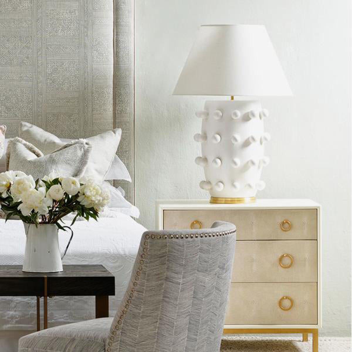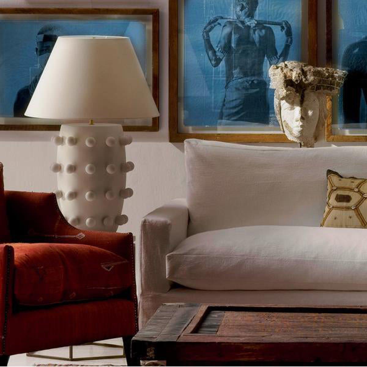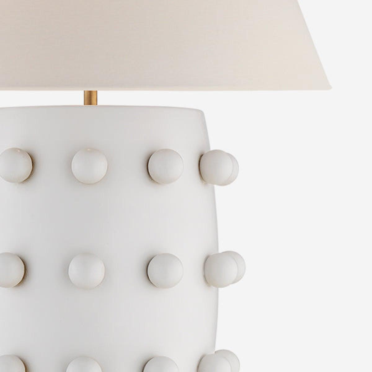 A glossy black table lamp decorated with bobbles, a large linen shade and antique brass fixings. Linden, crafted by the iconic designer Kelly Wearstler, adds unique character to a room in the shape of humour, texture and funky form. Available in two sizes. *Moot Trading Ltd is not a lender and acts only as an introducer. The credit product is provided by Klarna Bank AB (publ). Credit is only available to permanent UK residents aged 18 and over, subject to status. Terms and conditions apply. Please note that the following products are not regulated by the FCA: Pay in 30 days and Pay in 3 instalments. Read More.