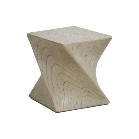 A chiseled square twisted accent table in taupe wood designed by Kelly Hoppen MBE. This piece is sure to generate an understated architectural impact in a minimalist contemporary space.