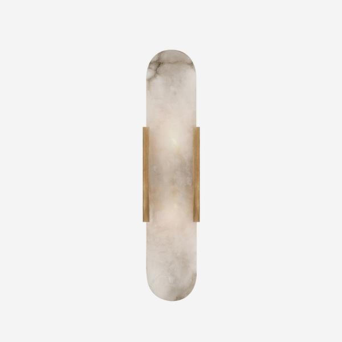 An elongated wall light affixed with antique-burnished brass and with the light glowing through crystal-like alabaster. Designed by Kelly Wearstler, Melange celebrates luxury femininity and the contemporary soulful spirit. *Moot Trading Ltd is not a lender and acts only as an introducer. The credit product is provided by Klarna Bank AB (publ). Credit is only available to permanent UK residents aged 18 and over, subject to status. Terms and conditions apply. Please note that the following products are not regulated by the FCA: Pay in 30 days and Pay in 3 instalments. Read More.