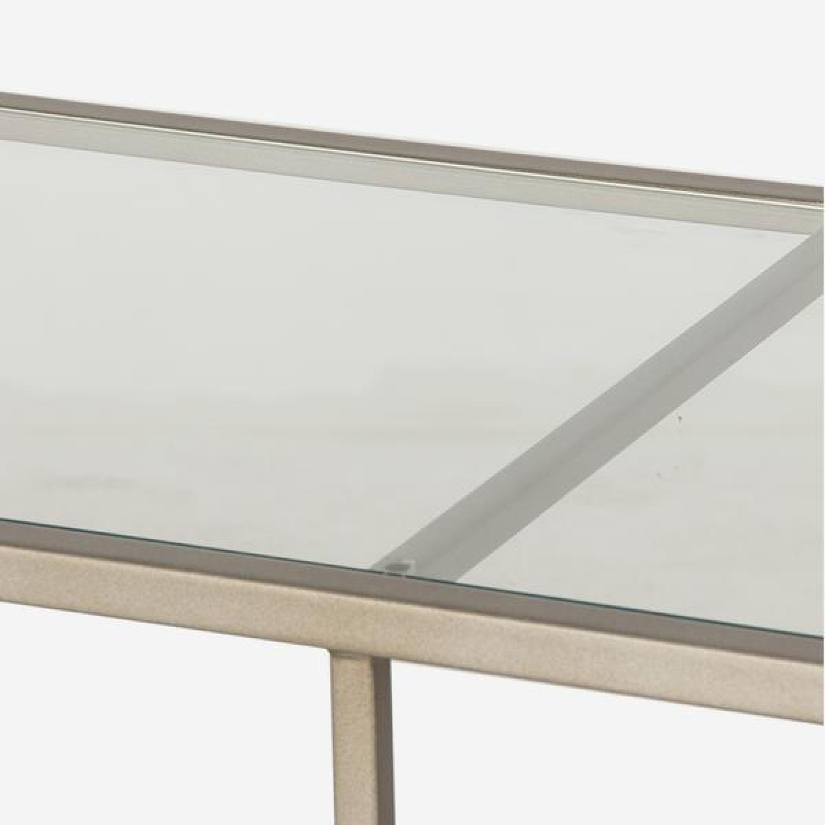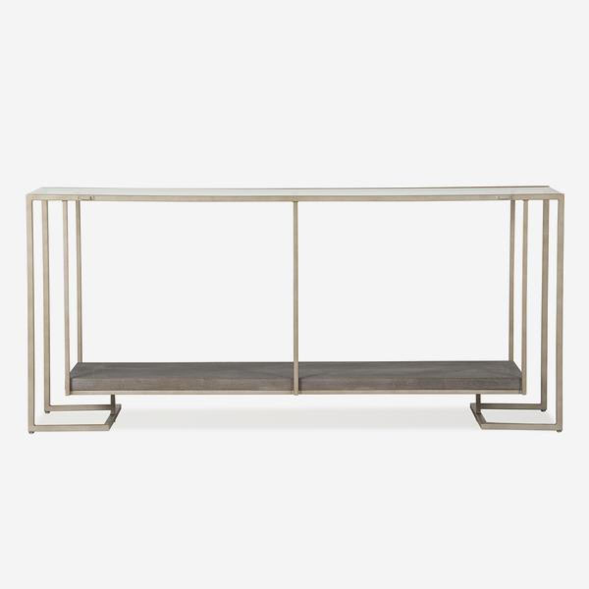 A stunning fusion of 1920s style and contemporary design features and materials, the Perplex Console Table by Andrew Martin will add character and beauty to your interior design. An angular frame with a mottled iron effect brings out the beauty of the lower shelf in solid oak, which is balanced by the top fashioned out of tempered glass. This cleverly designed piece lets the light flood through it and appears to take up very little room, making it suitable for rooms of all shapes and sizes. The art deco charm is matched by modern design features and materials in a truly engaging piece of furniture. *Moot Trading Ltd is not a lender and acts only as an introducer. The credit product is provided by Klarna Bank AB (publ). Credit is only available to permanent UK residents aged 18 and over, subject to status. Terms and conditions apply. Please note that the following products are not regulated by the FCA: Pay in 30 days and Pay in 3 instalments. Read More.