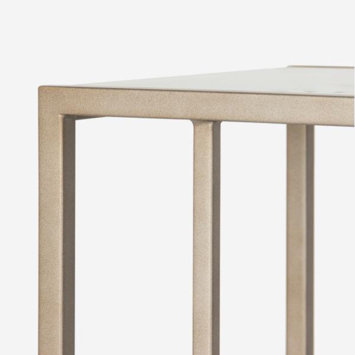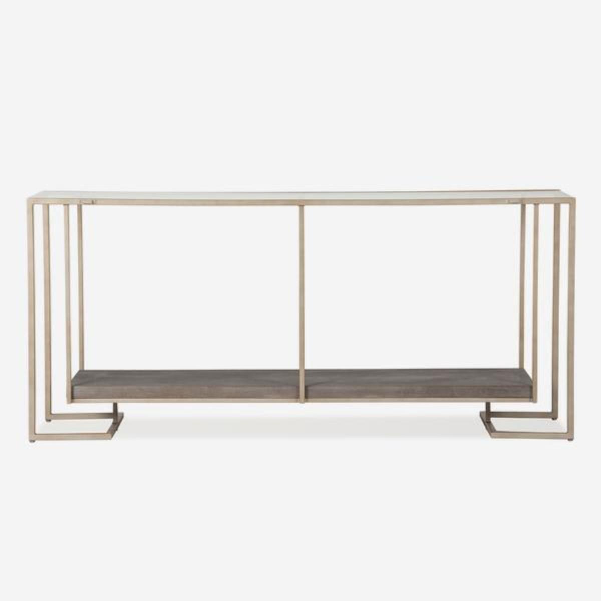 I love this console table for its sleek and modern design that can effortlessly elevate a variety of interiors. Its minimalist frame combined with the darker shelf adds interest without feeling heavy, making it ideal for both contemporary and transitional spaces. It works particularly well in hallways, behind sofas, or as a stylish display surface in living areas. For styling, consider layering with a mix of art books, vases, and lighting to create visual interest. Practical tip: use the upper surface for everyday essentials, while the lower shelf is perfect for baskets or smaller decorative objects to keep things organised. This piece is versatile and can adapt to many decorating styles, making it a smart yet stylish addition to the home.