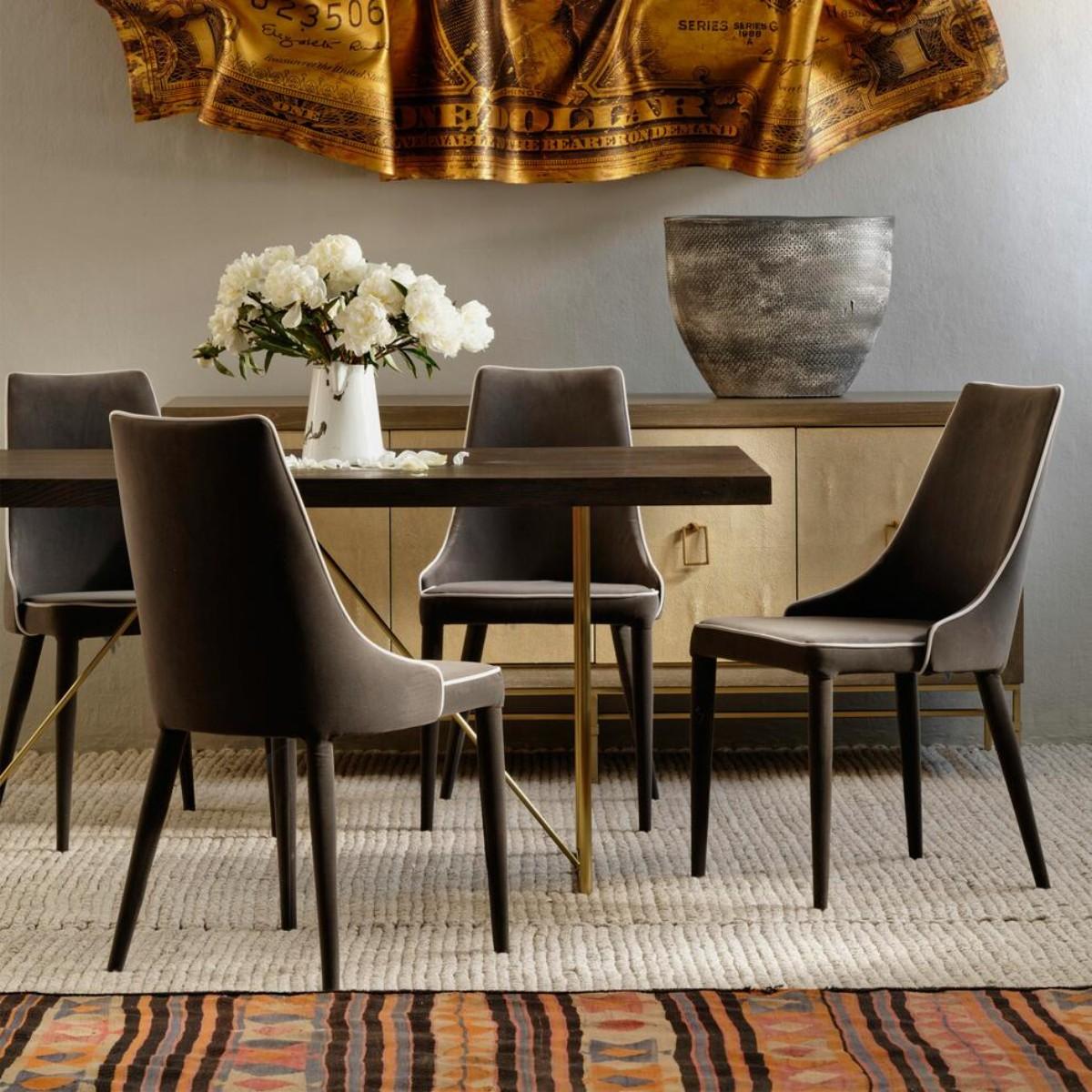 I love this one for its sleek, modern silhouette and versatile grey finish. It works particularly well in contemporary or minimalist dining spaces, adding a refined touch without overpowering the room. Its neutral tone makes it easy to pair with a variety of table styles and colour schemes, from muted palettes to bolder accents. For practical styling tips, consider layering with textured cushions or throws for added comfort, or pairing it with a statement table or lighting fixture to create a balanced, cohesive look. This chair's understated elegance means it can fit seamlessly into both formal and relaxed dining areas.