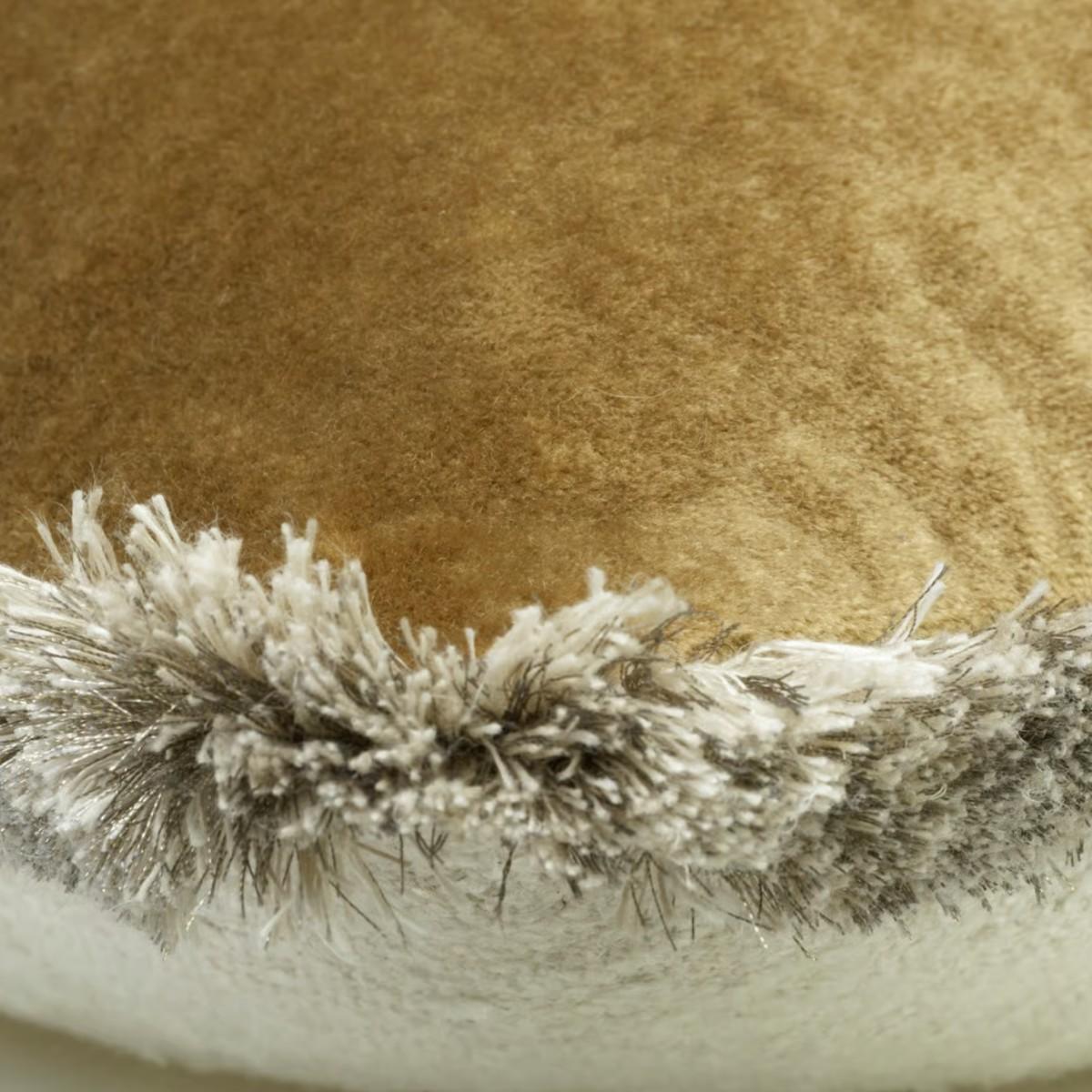 A glamorous two-tone cushion, fronted with a beautiful vintage Mohair made in Italy, epitomising the charm and elegance of Venice, and made from quality wool mohair, cotton and linen to create a super soft finish. Backed in plain Atrani Linen and paired with the luxurious Alezio trim to complete the look.