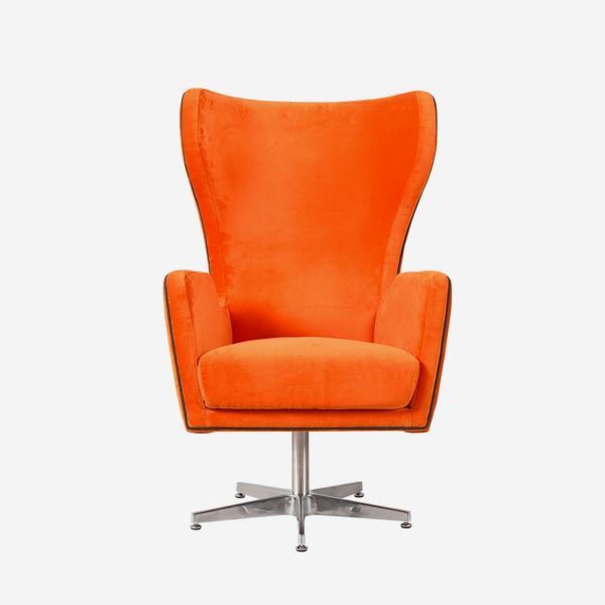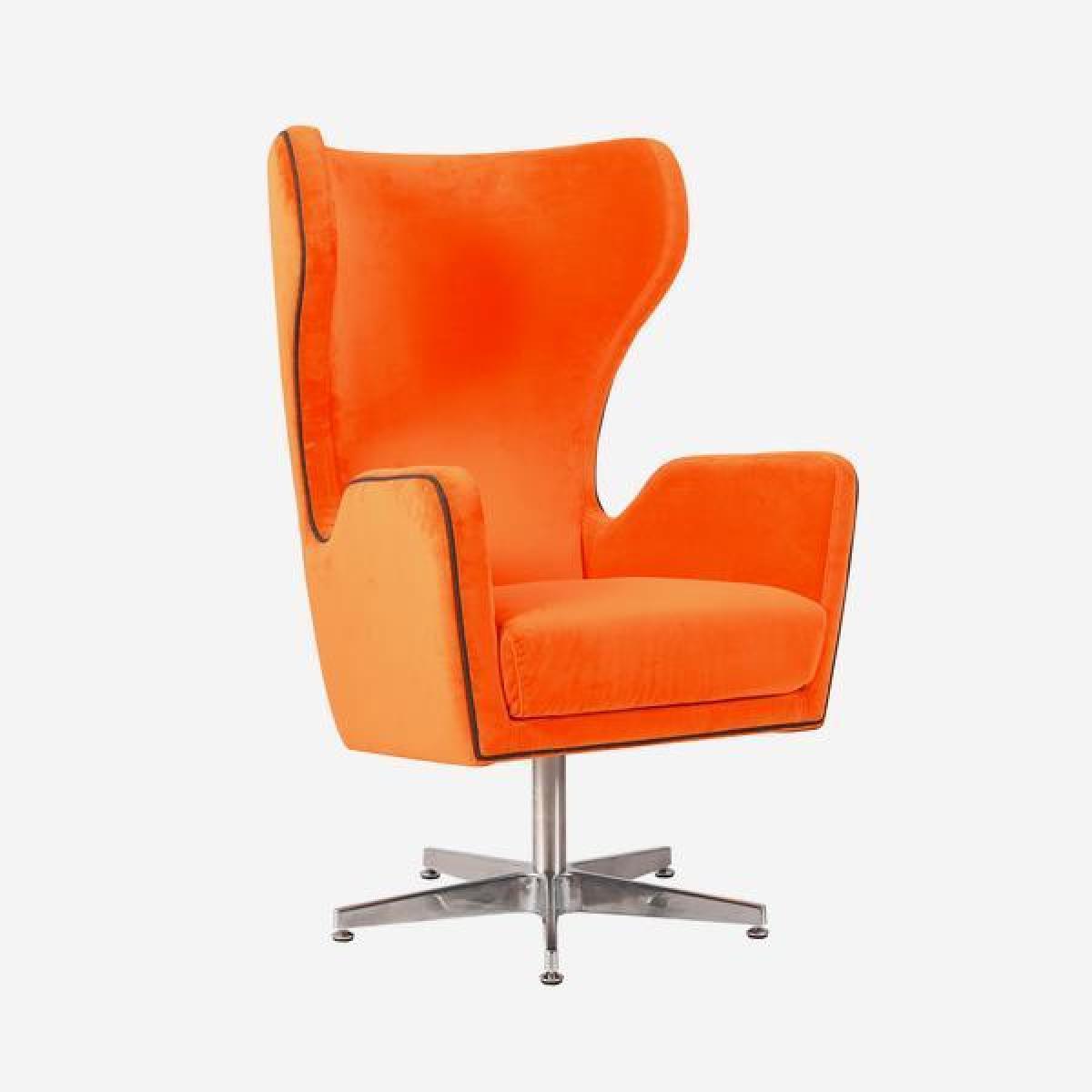 A popping orange velvet chair with the most retro silhouette. With a chrome swivel base, high back and arms, flare-like wings and grey flannel piping, Wham Bam adds 70s funk to a room. Place in your bedroom, kitchen or living room with a coordinating Meteor or Double Dip cushion and feel like you're on the set of Austin Powers. *Moot Trading Ltd is not a lender and acts only as an introducer. The credit product is provided by Klarna Bank AB (publ). Credit is only available to permanent UK residents aged 18 and over, subject to status. Terms and conditions apply. Please note that the following products are not regulated by the FCA: Pay in 30 days and Pay in 3 instalments. Read More.