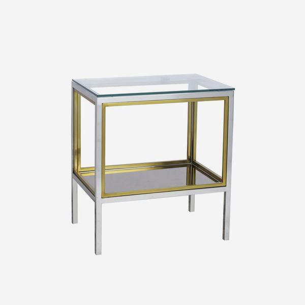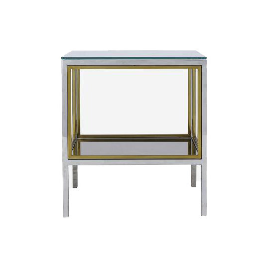 A stand out side table framed in stainless-steel with contrasting gold finishes, a toughened smoked glass shelf and clear glass top. This piece will add a sleek metallic element to your space. *Moot Trading Ltd is not a lender and acts only as an introducer. The credit product is provided by Klarna Bank AB (publ). Credit is only available to permanent UK residents aged 18 and over, subject to status. Terms and conditions apply. Please note that the following products are not regulated by the FCA: Pay in 30 days and Pay in 3 instalments. Read More.