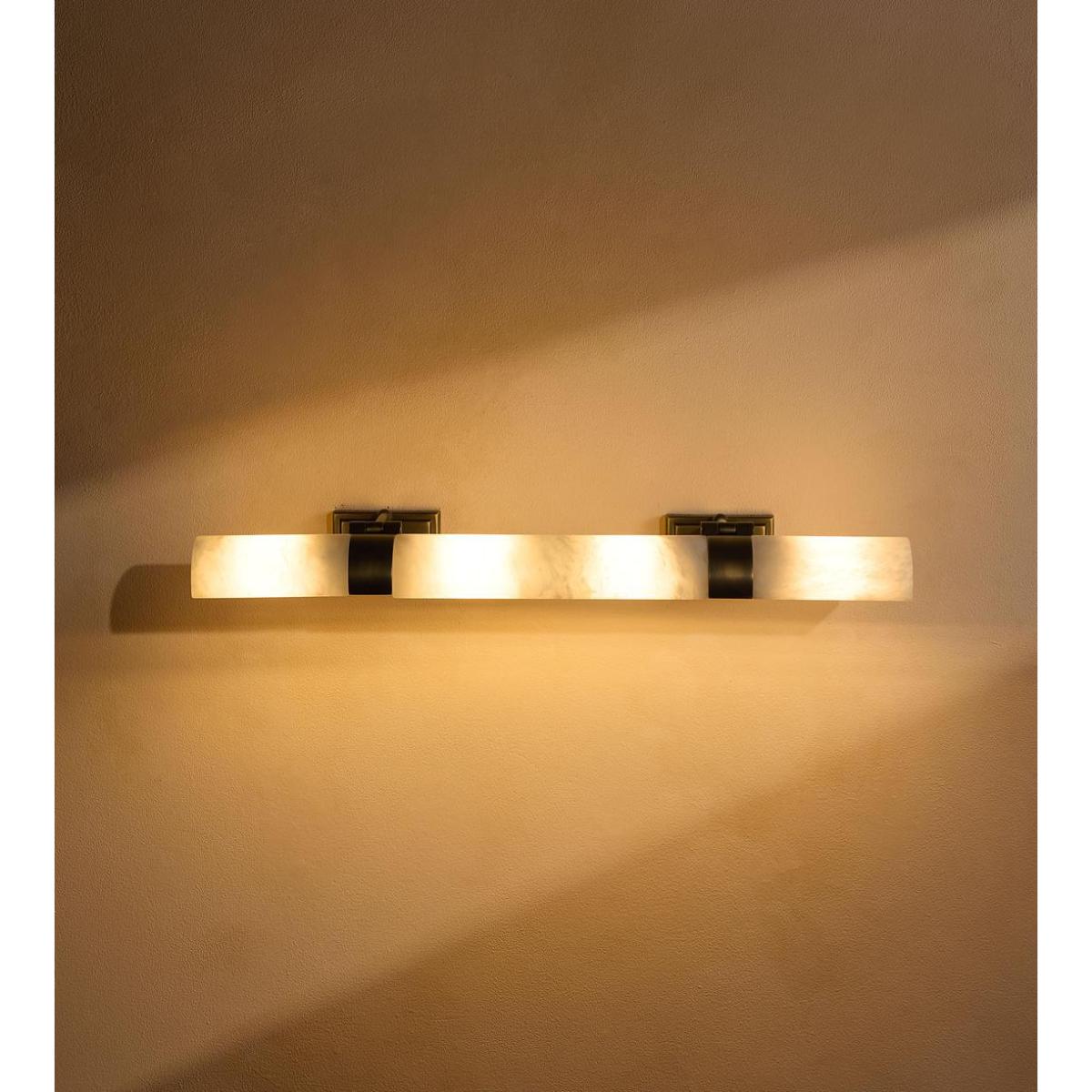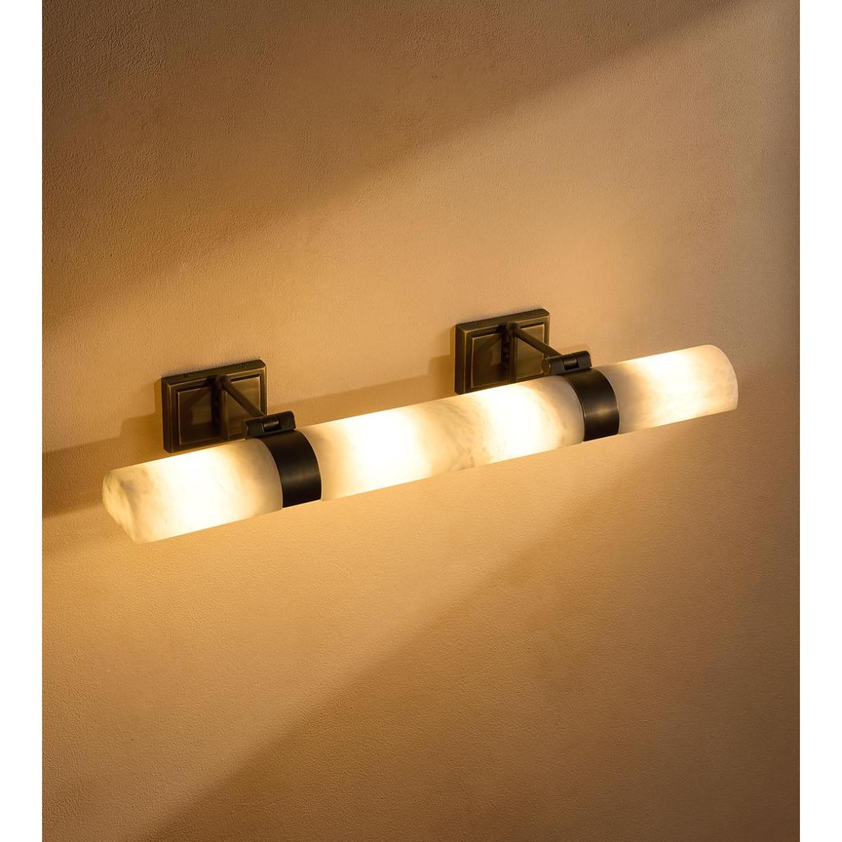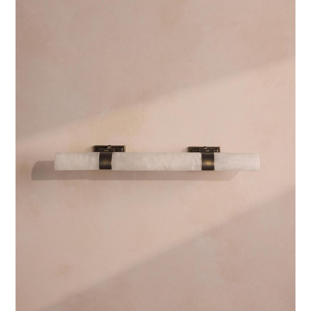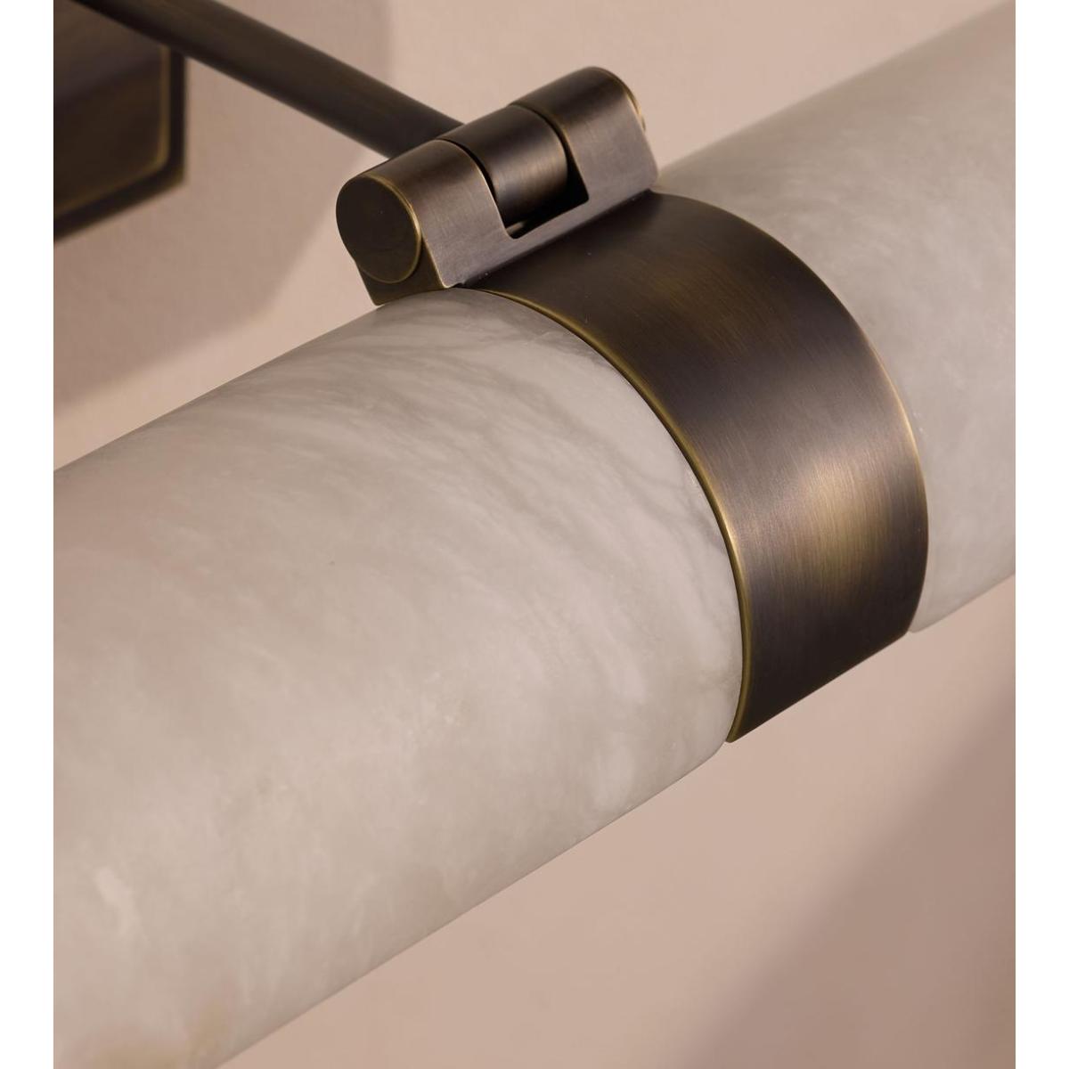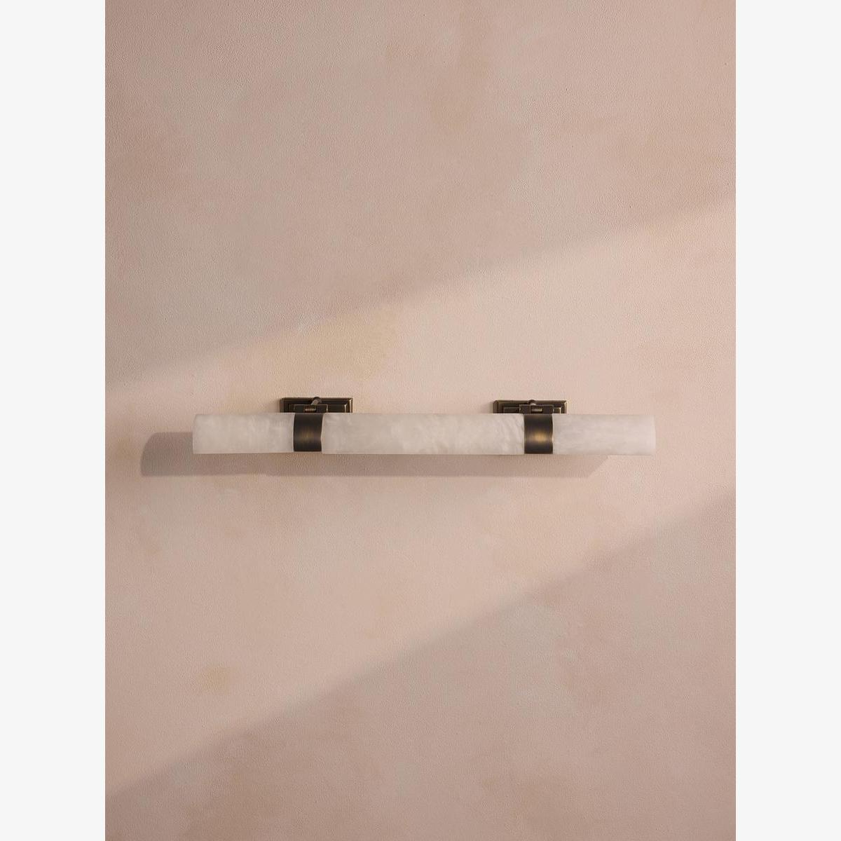 Mounted on a blackened brass frame, honed alabaster shades can be adjusted to direct the light onto your artworks. Inspired by the styles that illuminate the artworks in Little House Balham, our Andros picture light is designed to showcase your own collection. Concealed bulbs are housed within a cylindrical alabaster shade, then mounted onto a blackened brass arm made to sit above wall-mounted pieces.
