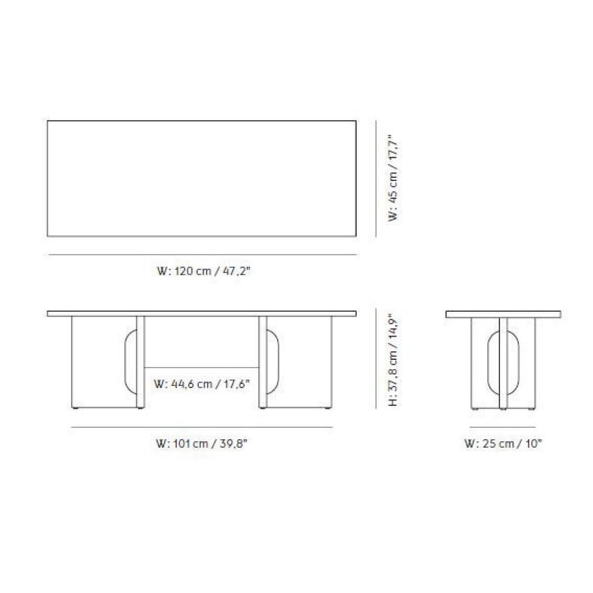 The Androgyne table is the work of Norwegian architect and designer Danielle Siggerud. This table was originally designed to furnish the cafe area of the Menu showroom in the Audo hotel in Copenhagen. The large, open structure in light oak supports a sand-coloured Kunis Breccia stone top. This marble-like limestone is characterised by its different shades of beige brown, subtly interwoven. The noble, classic appearance of the materials combines with the contemporary, graphic style of the base. This open structure is made up of thin criss-crossing wooden plates. The flat shapes and central openings play with our perception of volume, offering an amusing interplay of perspective. This coffee table will go equally as well in very modern and more traditional interiors.