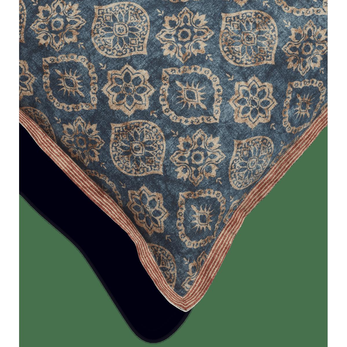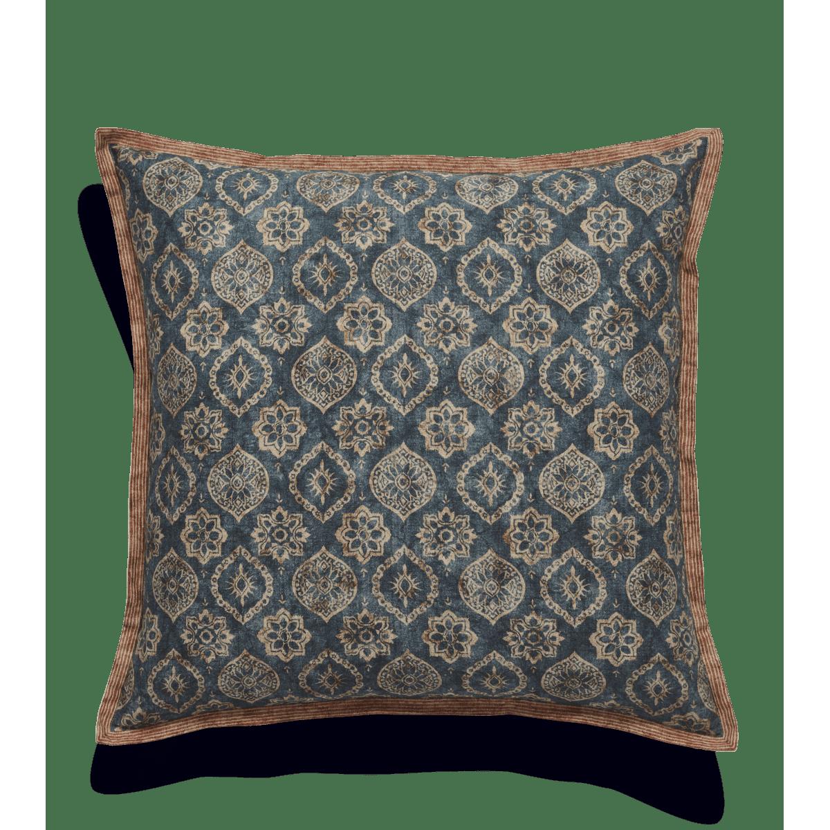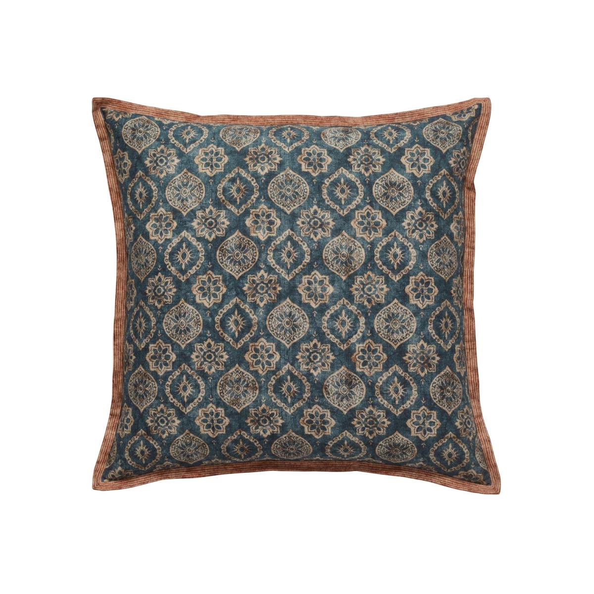 I love the way this cushion cover instantly adds a touch of sophistication to any space. Its rich blue tone and intricate pattern make it versatile enough for both classic and contemporary interiors. It works particularly well paired with neutral sofas or armchairs, creating a balanced look, but can also be layered with other textiles for a more eclectic vibe. Practical styling tips include mixing it with textured throws or pairing it with other patterned cushions for added visual interest. The trim detail gives it an artisanal feel, ensuring it elevates the overall aesthetic while remaining accessible for everyday use.