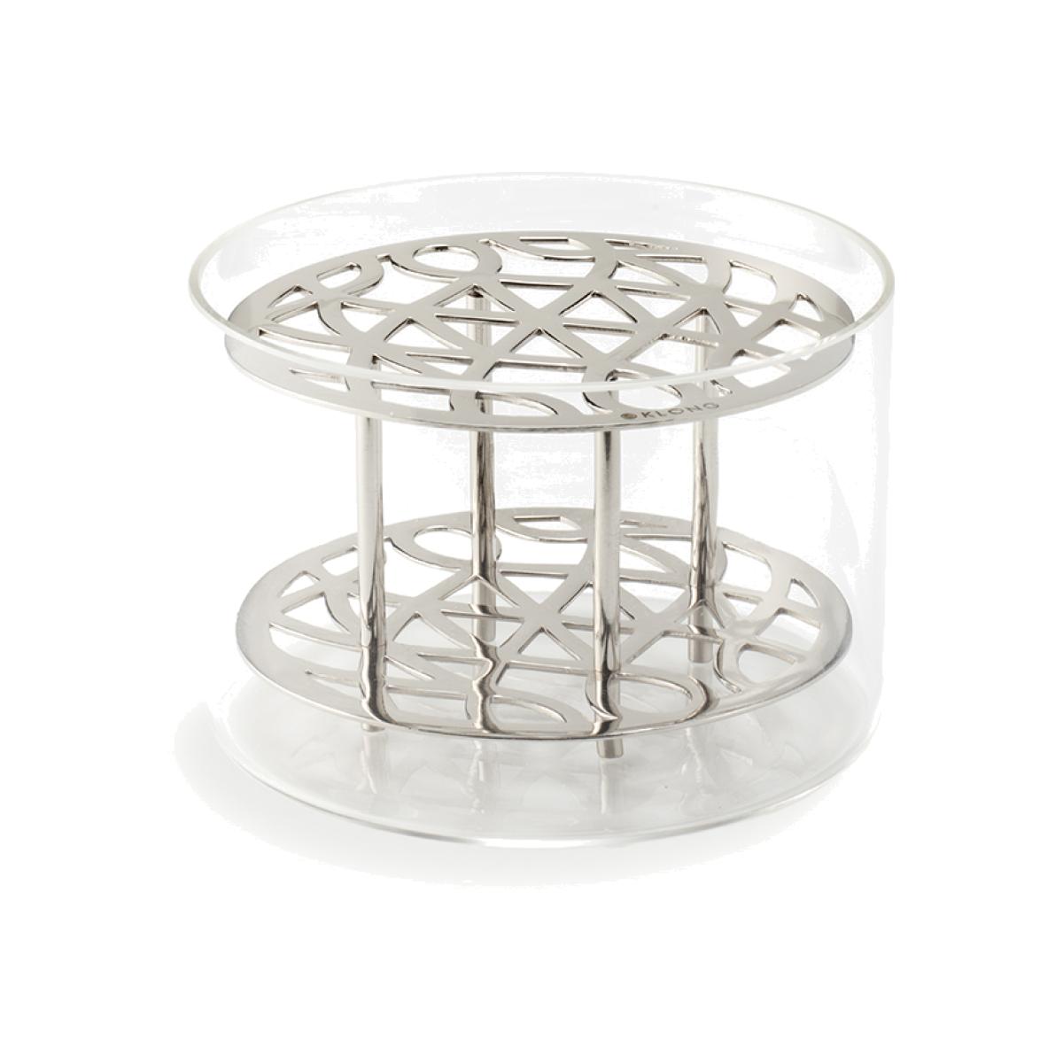 This small Äng Vase from Klong features a unique design to provide floral arrangements with enough support so they can stand majestically on their own. Designed by Eva Schildt, the Äng vase has become a modern classic and a true icon of contemporary design in homes all over the world. The striking vase is made from mouth-blown glass and features an included metal insert with an intricate pattern in handsome shades. The baroque inset allows each flower to have its very own space, making it easy and simple to create an ornate floral display. Available in several colours.