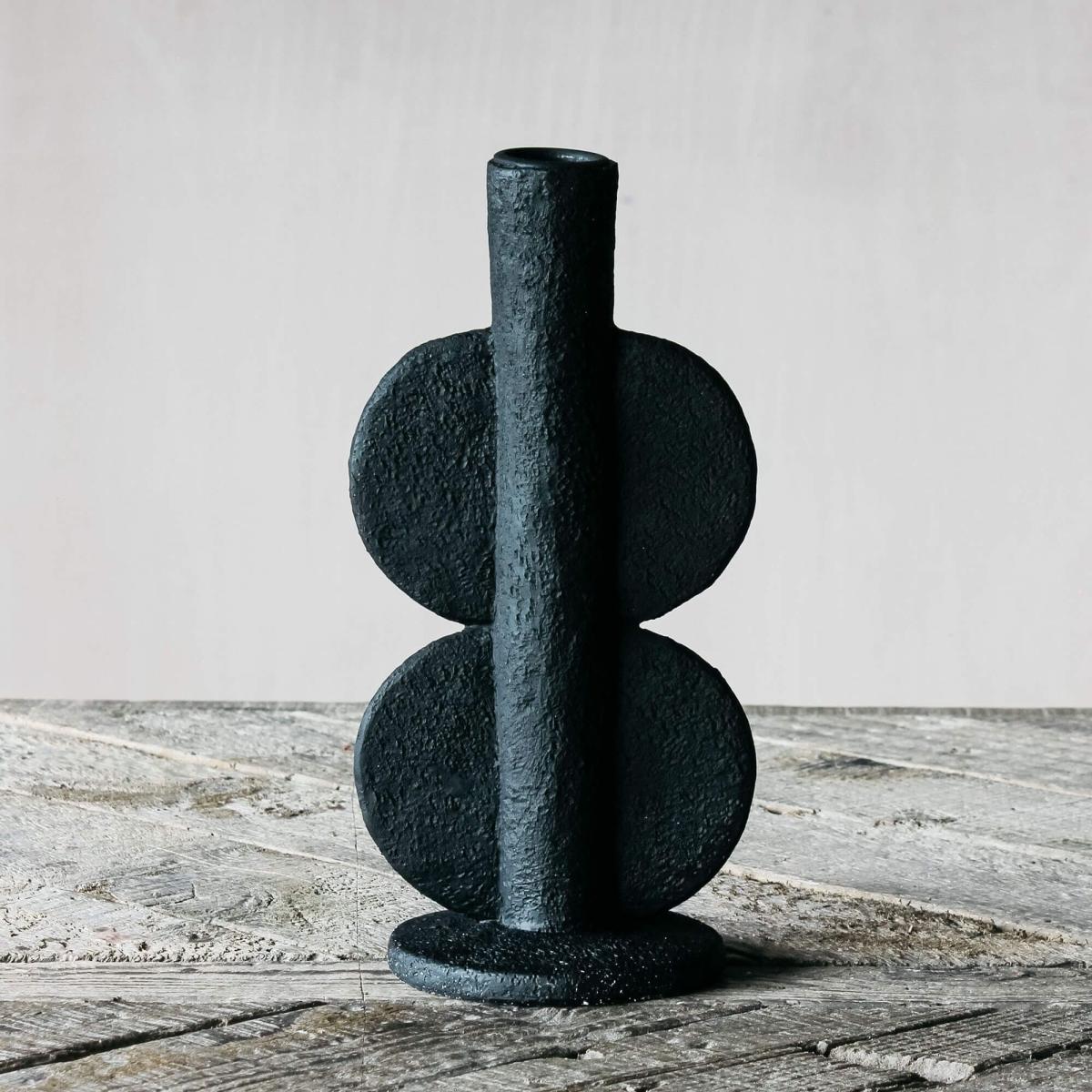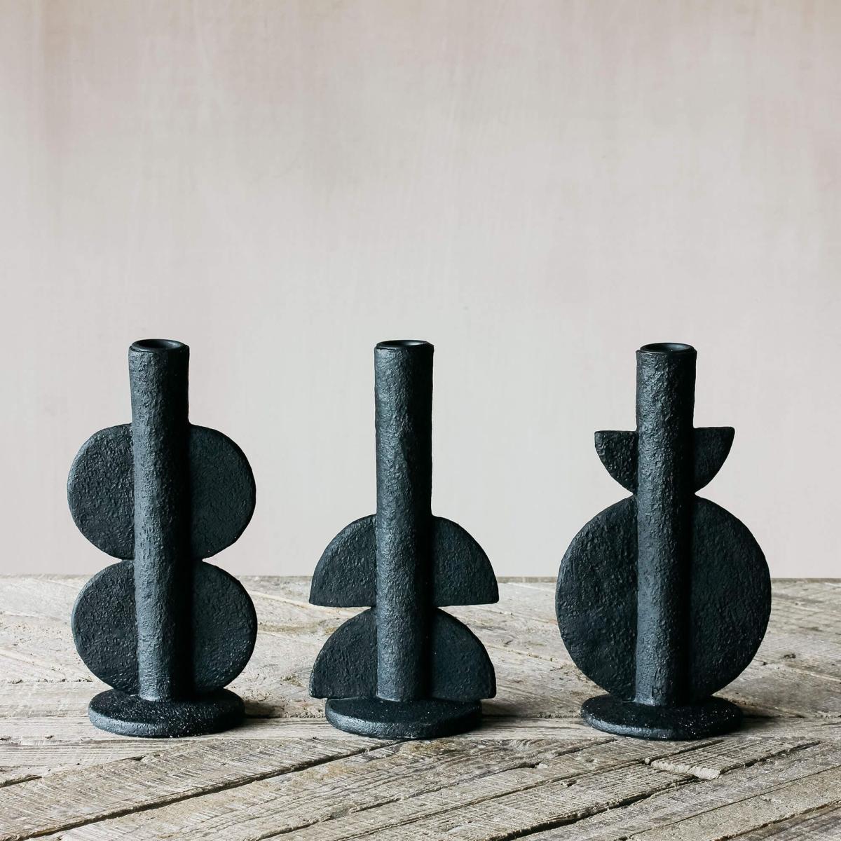 A striking collection of black candle holders with abstract geometric shapes and a rough textured finish. Collect all styles and pair with coloured dining candles.