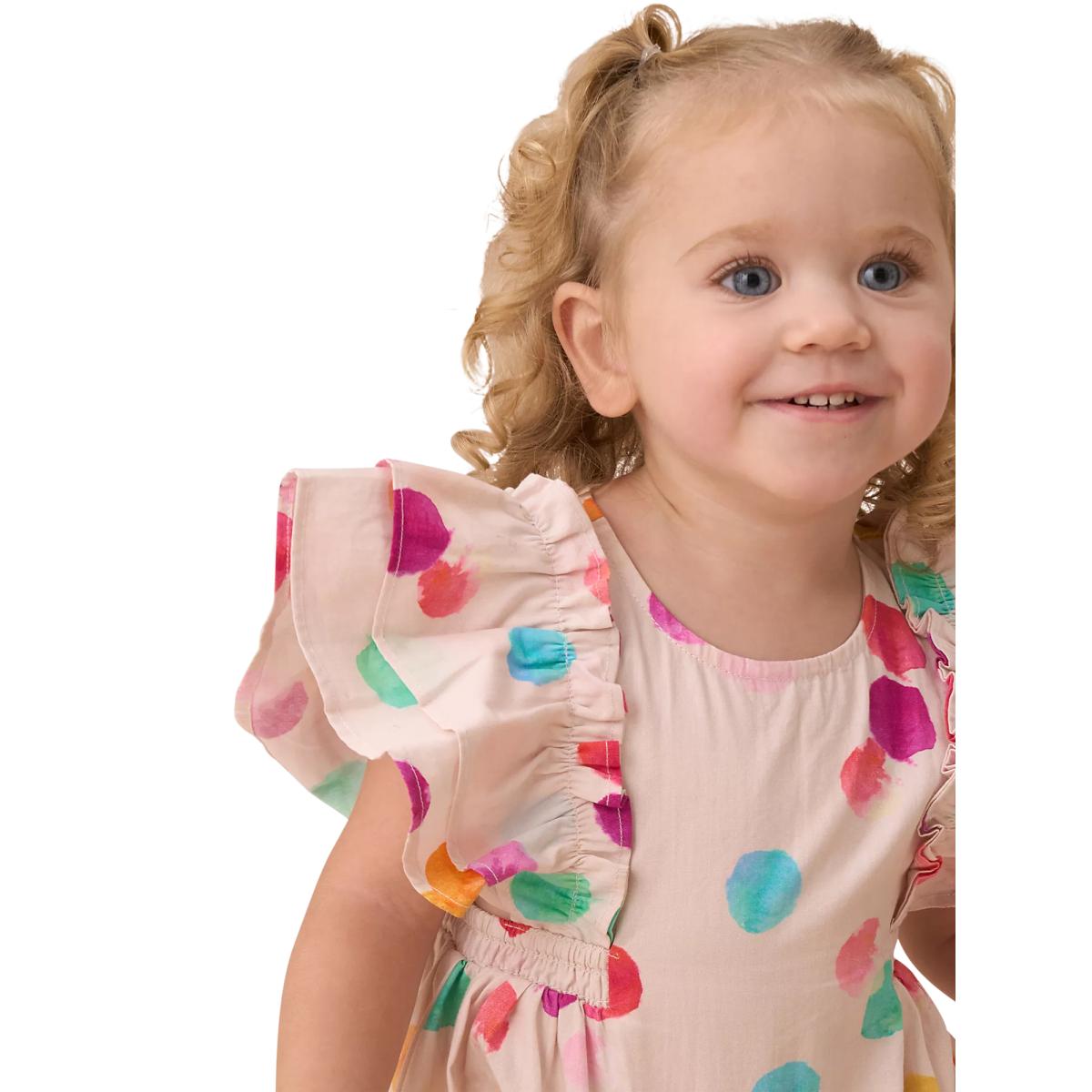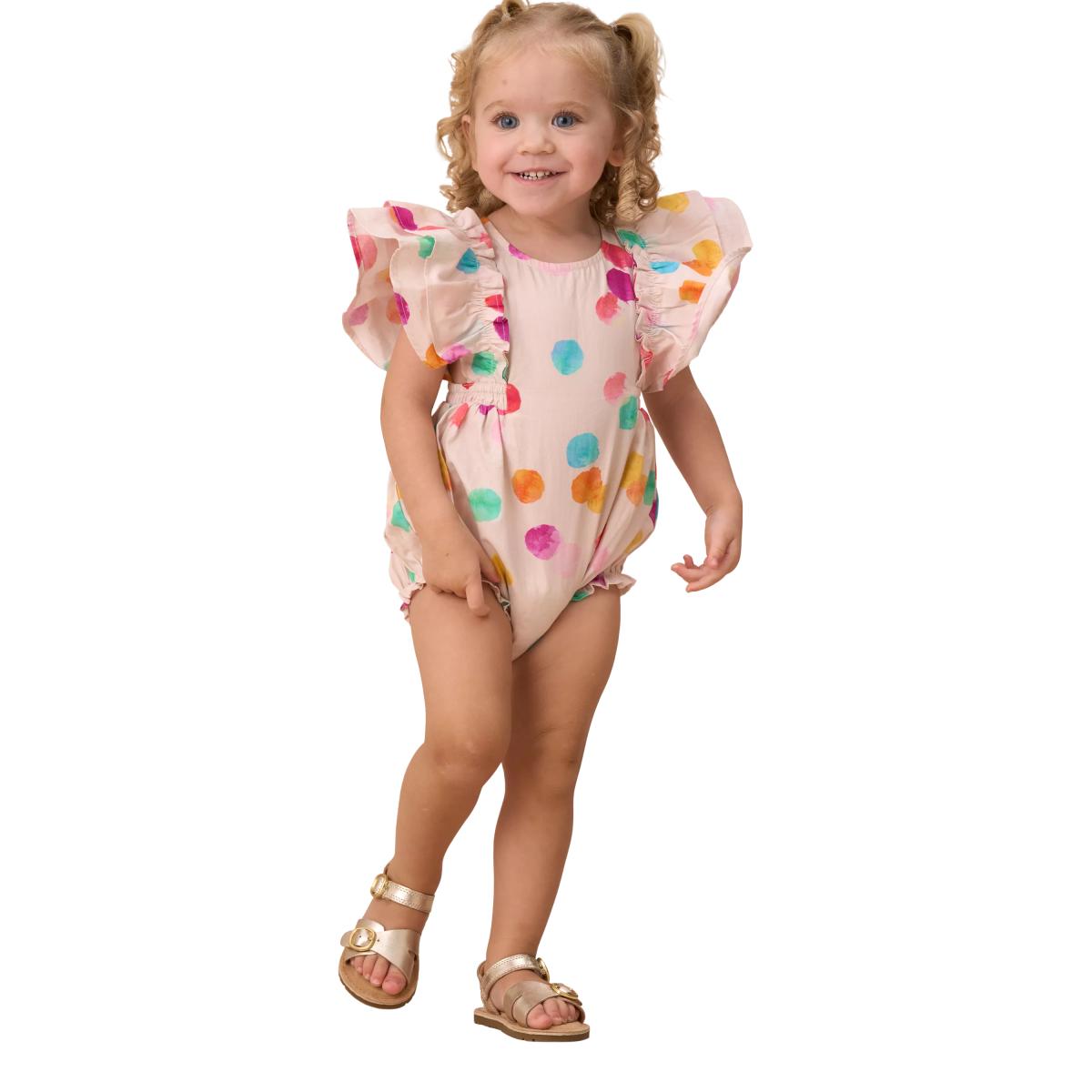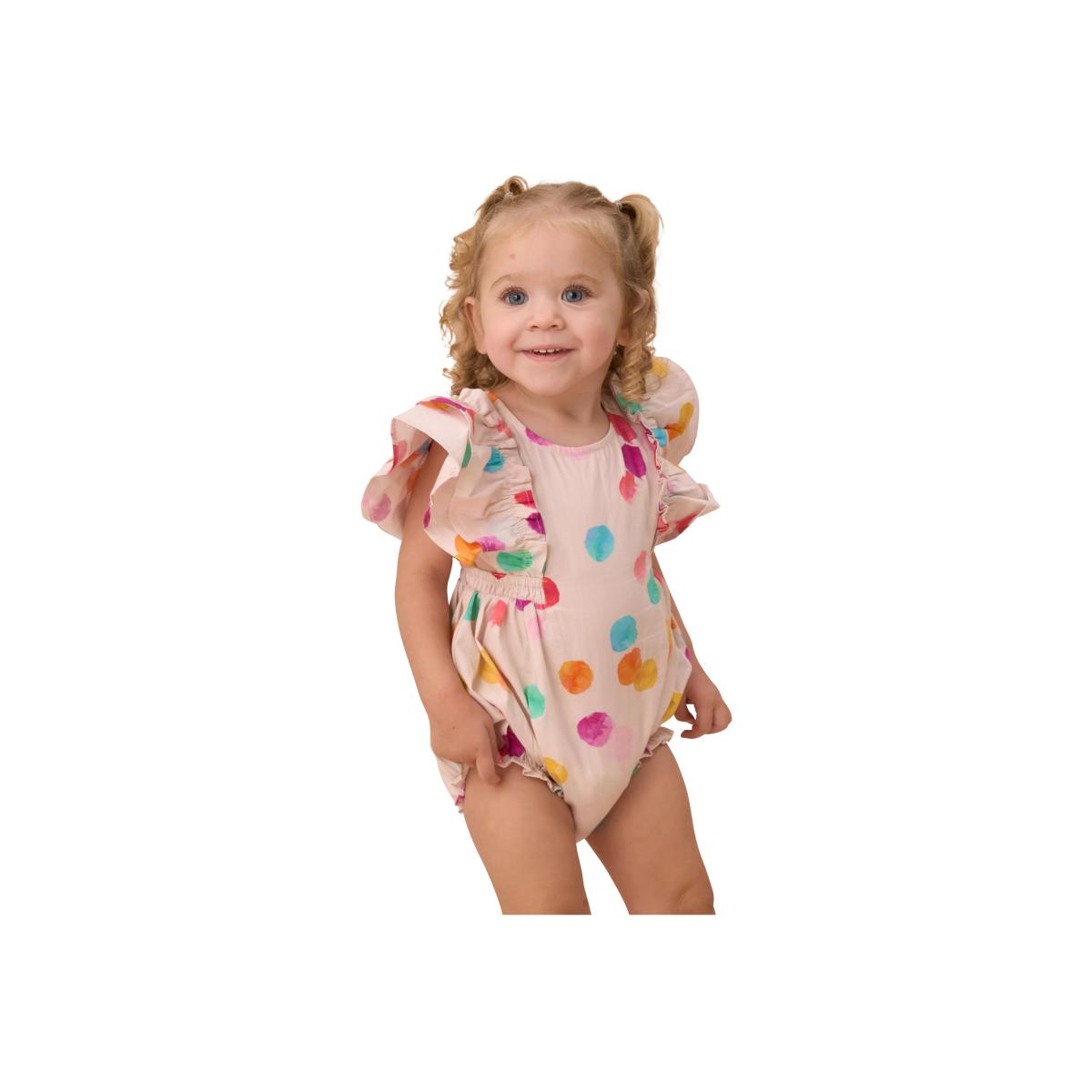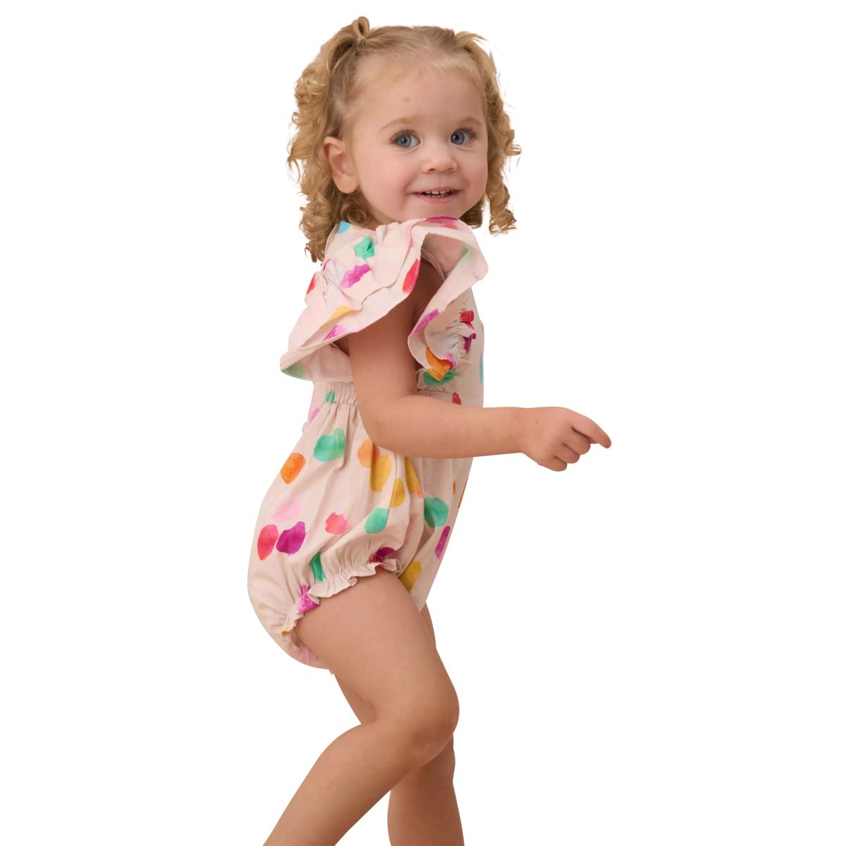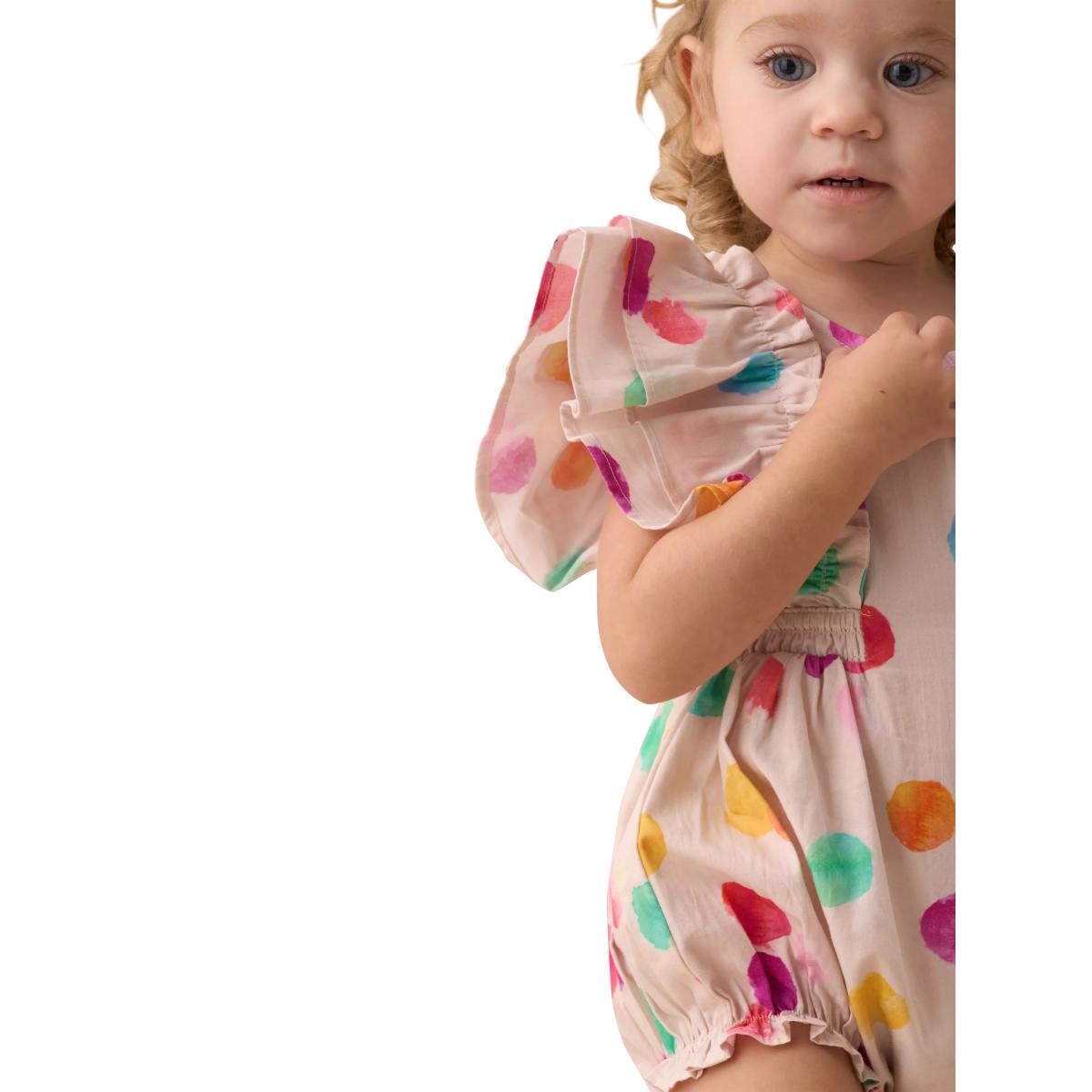 Made from super soft cotton, this romper features a pretty tiered short sleeve and vibrant spot print.