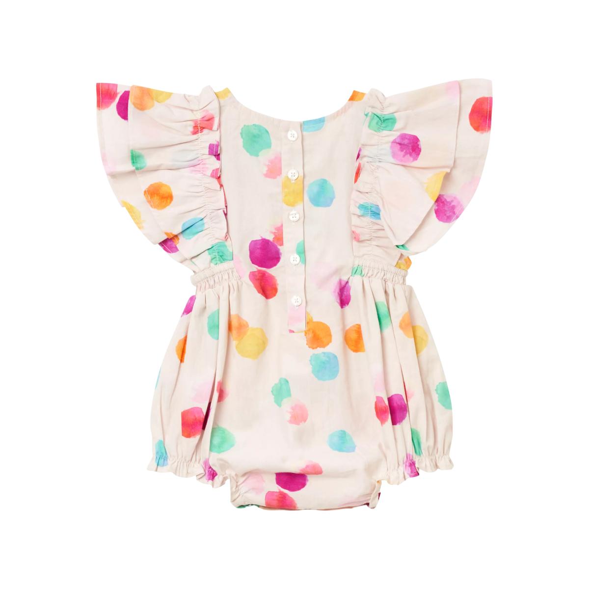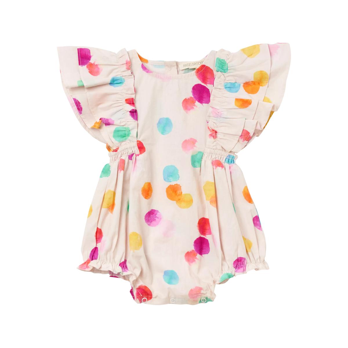 Angel & Rocket Baby Cotton Rainbow Spot Romper, Multi