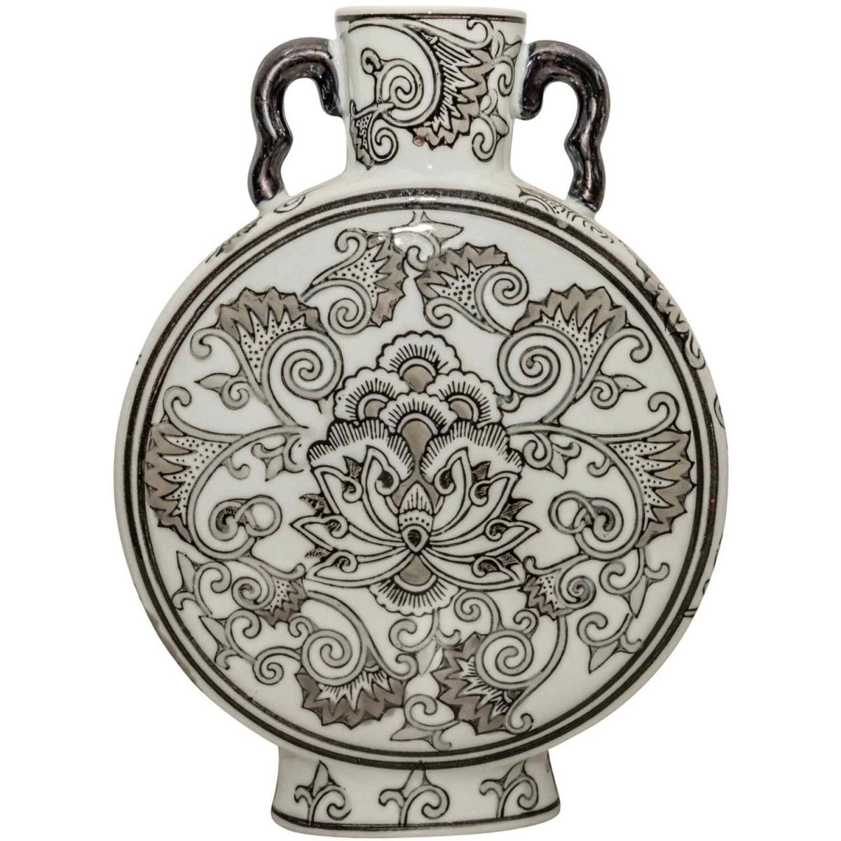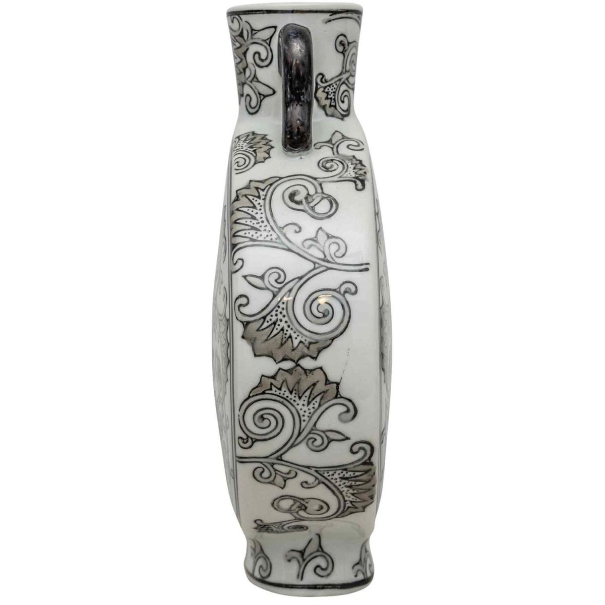 This unusual hand painted floral style bottle vase with handles could add that Asian inspired feel to a contemporary setting. The overall size of this vase is H31.5cm x W23.5cm x D7cm, It has 6cm opening at the top of this vase. Overall measurements D31.5 x H23.5 x W7cm