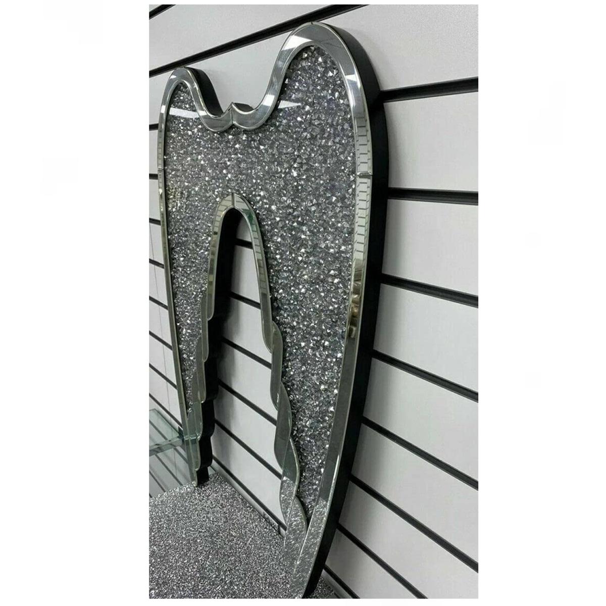 I love how the angel wing mirror in silver adds a touch of glamour and a celestial vibe to any space. It works particularly well in eclectic or contemporary interiors, where statement pieces are key. For styling, consider placing it in a dressing room or bedroom to elevate a favourite vanity corner, or use it as a striking focal point in a minimalist hallway. To enhance its sparkle, pair it with soft lighting or metallic accessories, and keep surrounding decor relatively simple to let the wing's shimmer truly stand out. It’s a versatile piece that combines functional mirror space with high-impact visual appeal.