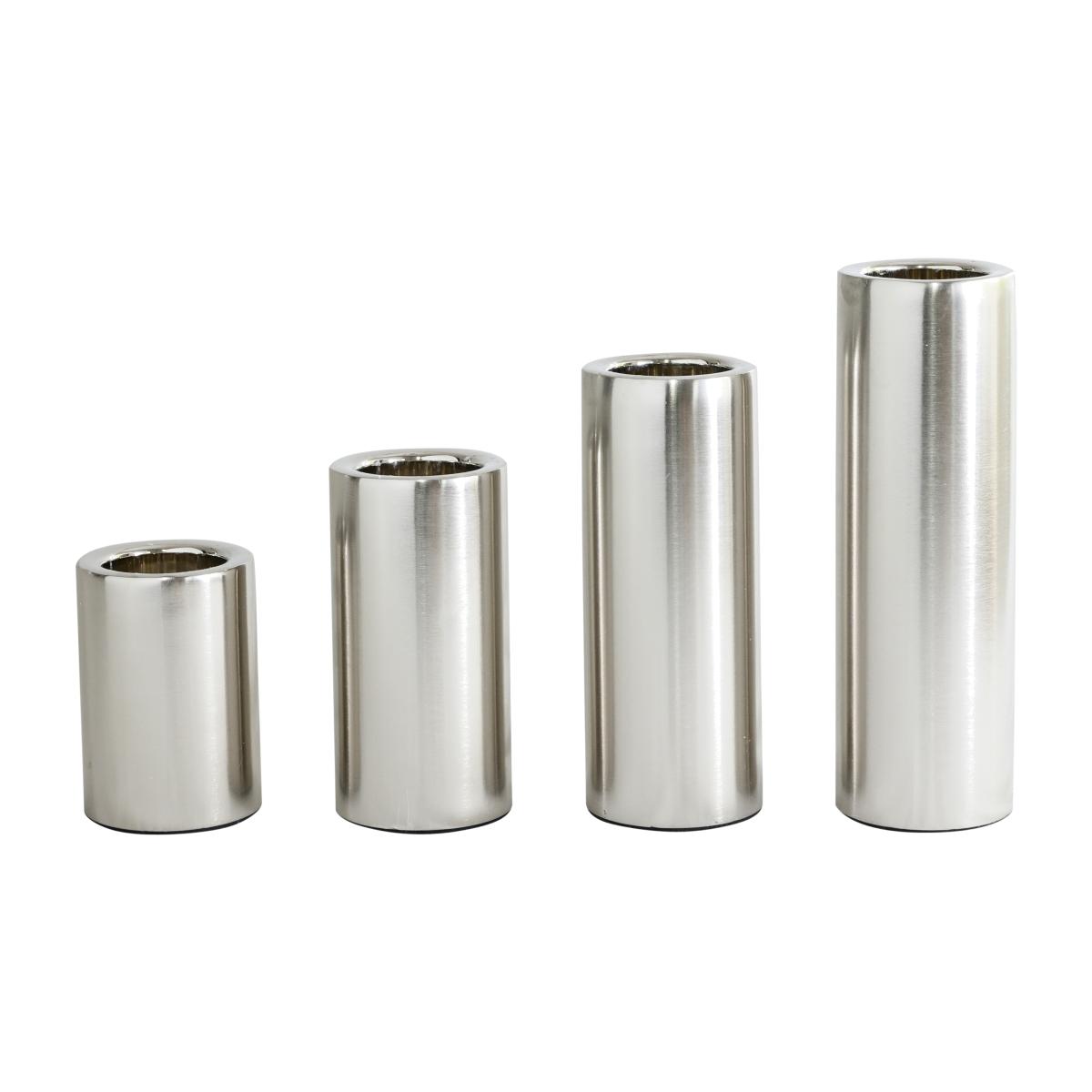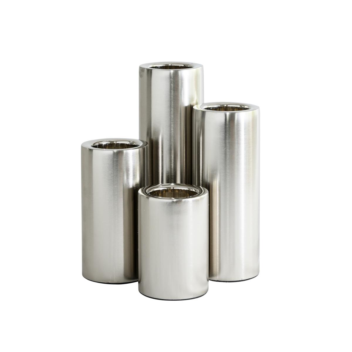The Angelica candle holder 4-piece set from Watt & Veke is a series of four elegant cylindrical candle sticks. Use the set to create a stylish and luminescent interior arrangement. Place them together in a playful cluster on the dining table or use each piece independently as an evocative interior detail. The candle sticks are specially adapted for tea lights to create a wonderfully evocative display. Pair the candle holders with a soft blanket to protect the table surface when the flame is lit.