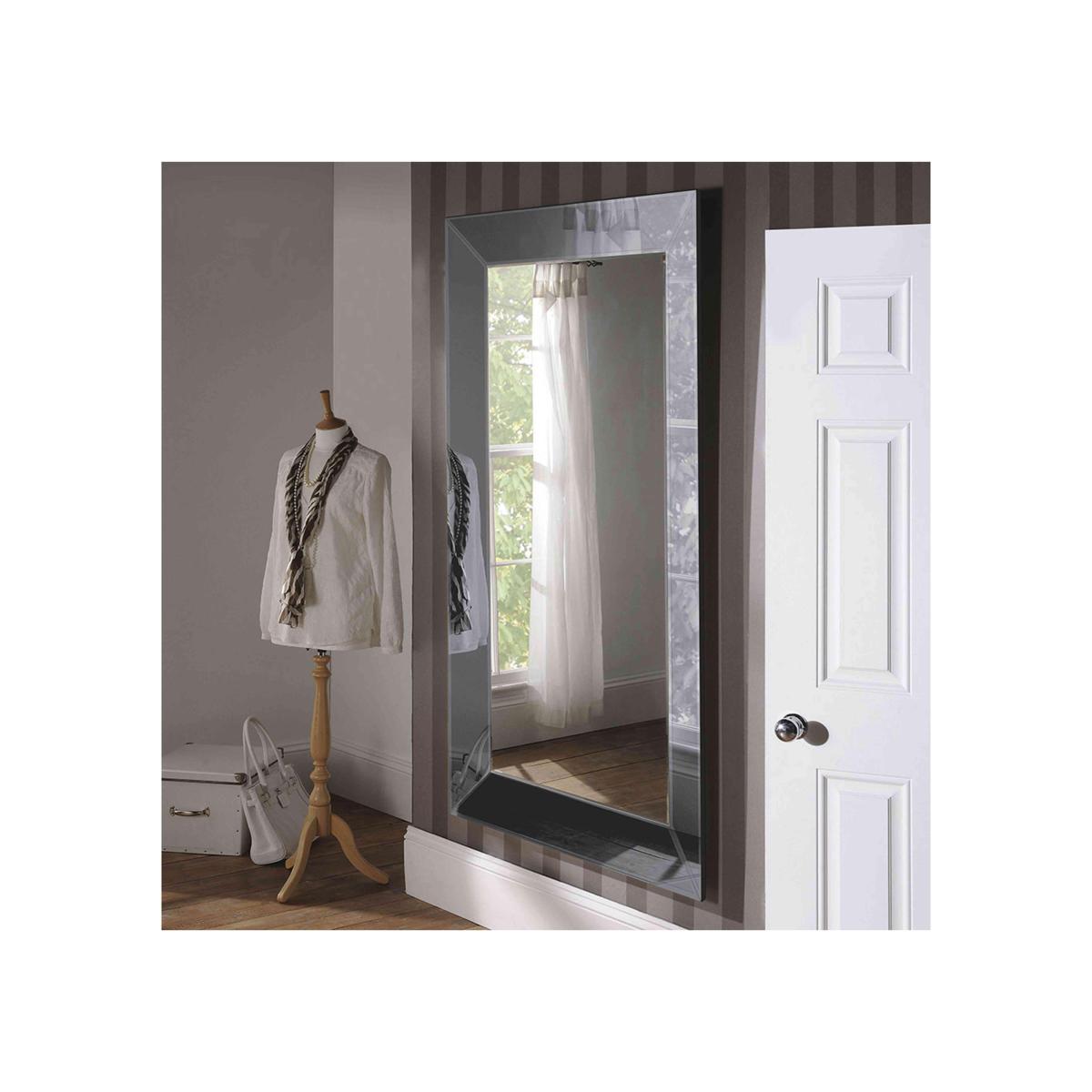 Thanks to its substantial smoke-tinted mirrored frame that angles away from the wall, this stylish mirror has real impact. Why you'll love it Statement modern framed mirror is bold and striking. Contemporary glam style. Smoke-grey mirrored frame curves inwards. Handcrafted in the UK. This mirror is part of the Furniture Village home accessories collection. What you need to know Wood frame and back. Can be hung horizontally or vertically. For indoor use only. Dimensions Height: 107 cm (42 in). Depth: 6 cm (2 in). Width: 183 cm (72 in).