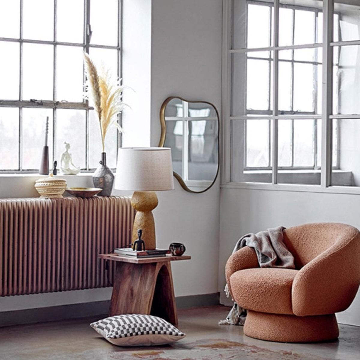 I love this mirror for its bold, organic shape and warm brass finish, which makes it a versatile piece that can elevate both contemporary and vintage-inspired interiors. It works particularly well in minimalist settings or as a statement piece above a fireplace or console table. To style it effectively, consider pairing it with muted colour palettes to let the brass edge stand out, or create a layered look by combining it with smaller mirrors or artwork. Practical tip: since its shape is asymmetrical, it’s best to hang it at eye level and ensure the surrounding pieces are kept simple to truly let it shine.
