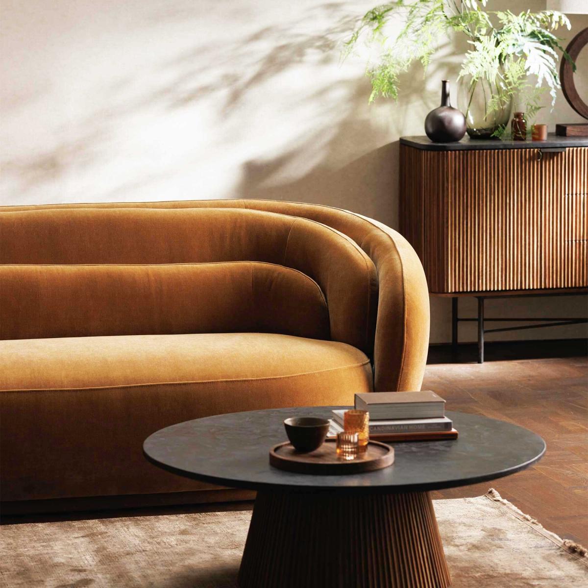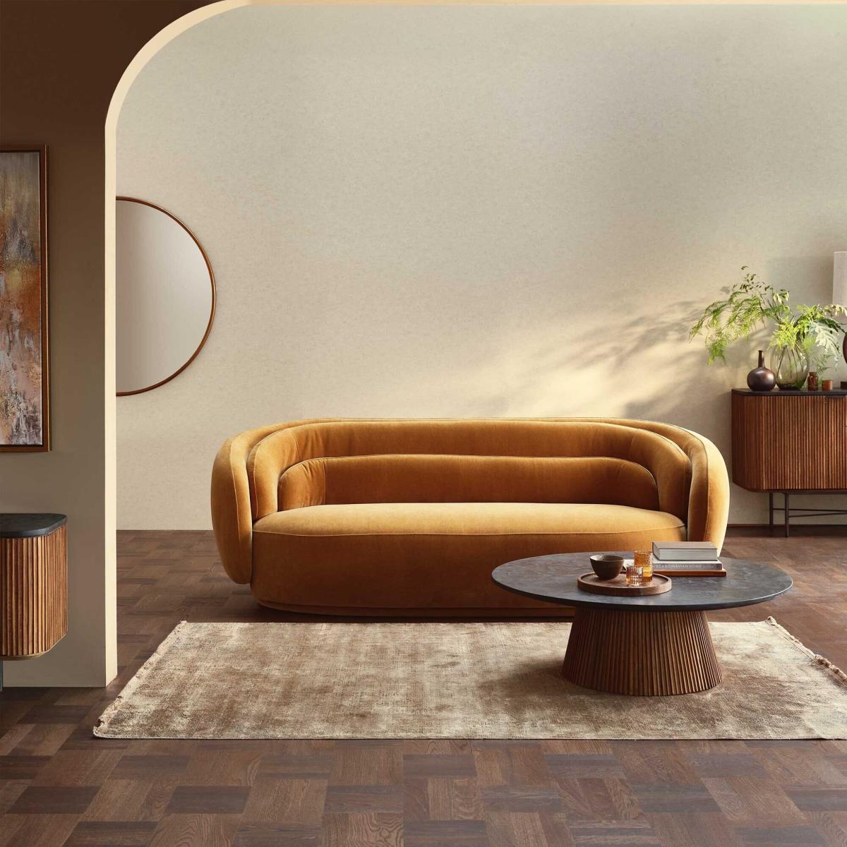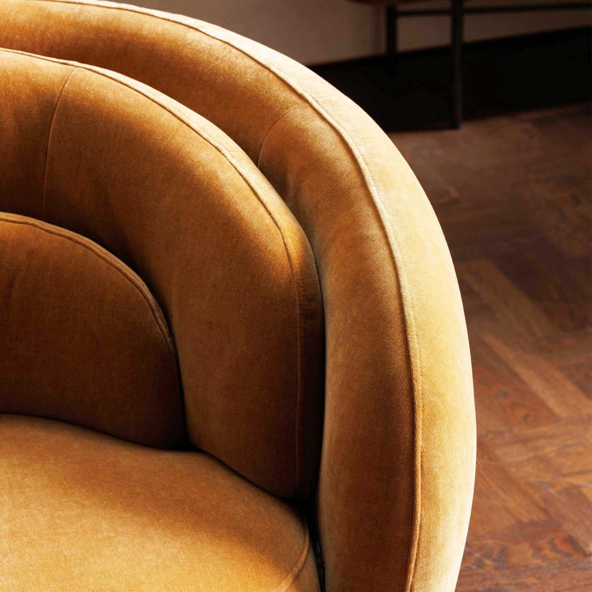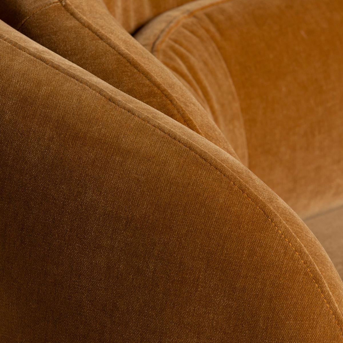 I love this sofa for its plush, inviting shape and rich brown fabric that adds warmth to any space. It works particularly well in both contemporary and vintage-inspired interiors, serving as a statement piece in a neutral living room or adding depth to a patterned scheme. Practical styling tips include layering with textured cushions and throws for added comfort, as well as pairing it with a mix of modern and traditional accessories to keep the look balanced. Its rounded silhouette and soft upholstery make it an ideal choice for creating a cosy, inviting atmosphere, whether in a family lounge or a more relaxed seating area.